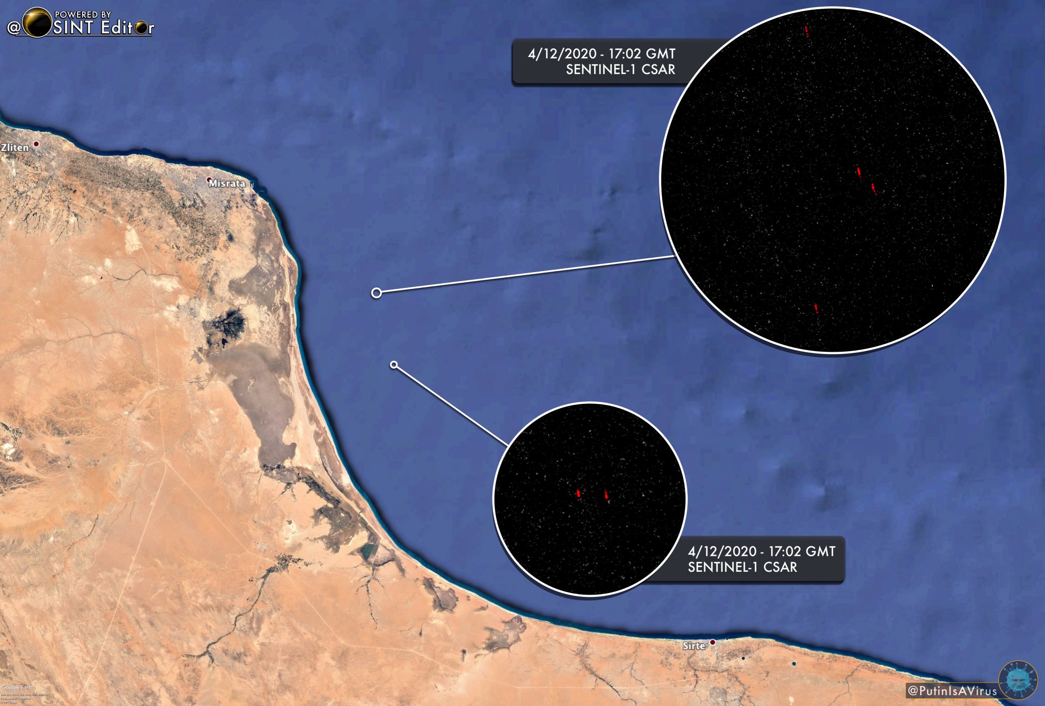 وبينت صورة رصدها قمر صناعي لشركة ” Osint “ وجود 6 فرقاطات وبوارج تركية في المنطقة المقابلة لأبوقرين غربي مدينة سرت وبدت وهي تبحر في تشكيلين منفصلين .