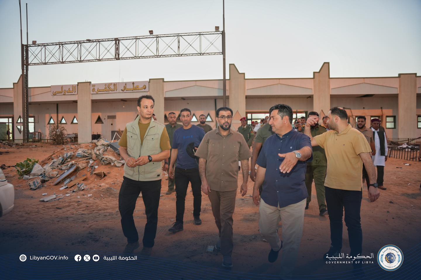 وقد أجرى رئيس الوزراء فور وصوله جولة تفقدية على مشروع تطوير مطار الكفرة الدولي وصالاته ومرافقه الحديثة الذي تشرف عليه الحكومة الليبية.