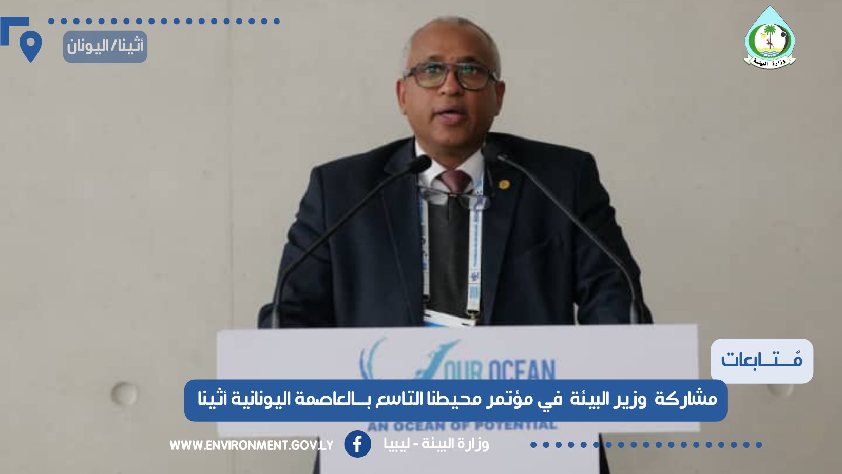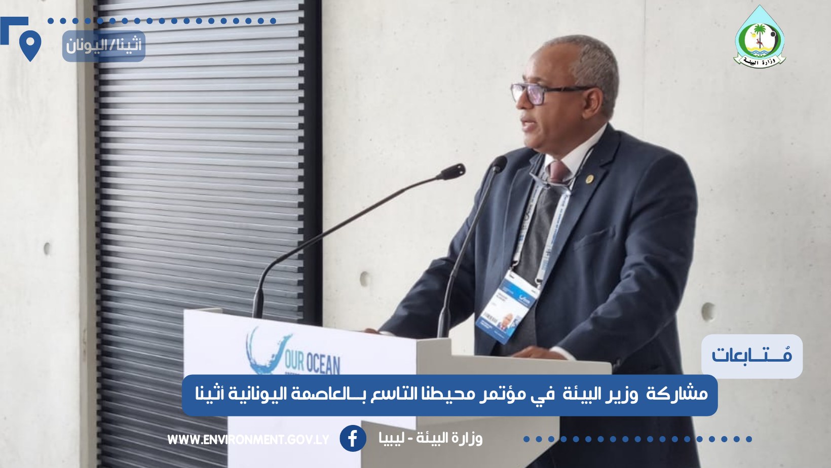 أثينا 17 أبريل 2024 (الأنباء الليبية)- شارك وزير البيئة بحكومة الوحدة الوطنية إبراهيم العربي الأربعاء، في فعاليات المؤتمر التاسع للأمن البحري والتغير المناخي المنعقد في العاصمة اليونانية أثينا تحت شعار “محيطنا… محيط الإمكانيات”.
