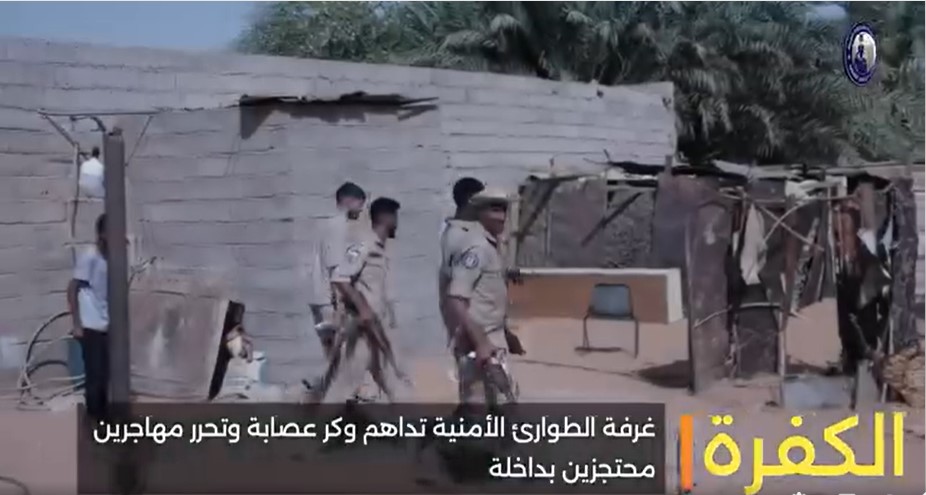 وذكر مكتب الإعلام الأمني بوزارة الداخلية في الحكومة الليبية، أن عملية المداهمة أسفرت عن عثور على كميات كبيرة من الذخائر الثقيلة، إلى إنقاذ مهاجرين كانوا محتجزين وتعرضهم للتعذيب والاعتداءات الجنسية، والقبض على المجرمين الذين كانوا يديرون الوكر. (الأنباء الليبية- الكفرة)