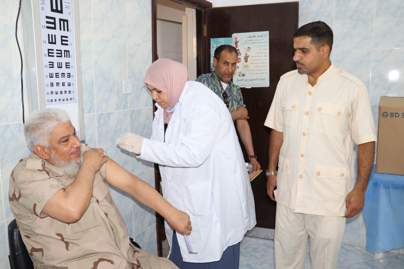 يشار إلى أن انطلاق برنامج التطعيم بعيادة 23 يوليو المجمعة، حضره مدير إدارة الخدمات الصحية بنغازي ناصر الكاديكي، ومدير إدارة الرعاية الصحية الأولية بوزارة الصحة أسامة القطعاني، ومدير مكتب الرعاية الصحية الأولية رمضان الفيتوري، والفرق الصحية بالغرفة المركزية بإدارة الخدمات الصحية بنغازي. (الأنباء الليبية- بنغازي)