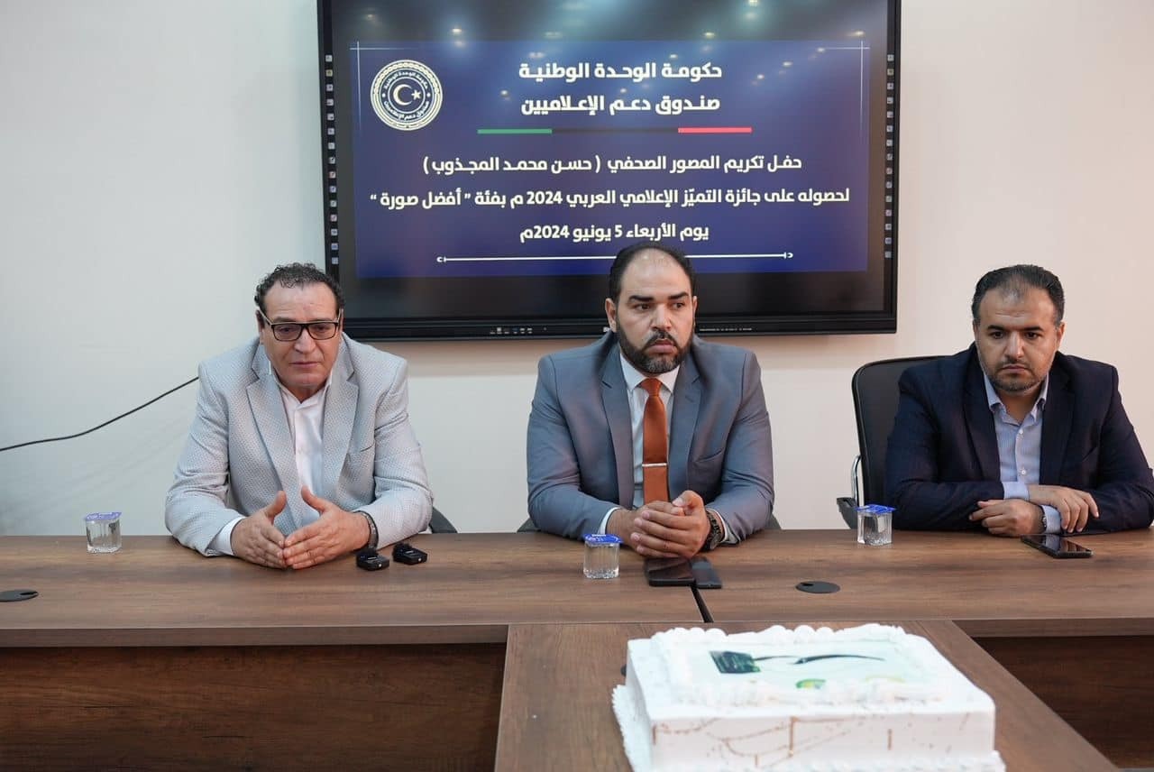 طرابلس 05 يونيو 2024 (الأنباء الليبية) -أقام صندوق دعم الإعلاميين، اليوم الأربعاء، بمقر الصندوق بطرابلس حفلا تكريميا للمصور الصحفي حسن المجدوب، وتسلم خلال الحفل درع جائزة التميز الإعلامي العربي 2024م في دورتها الثامنة التي نظمها قطاع الإعلام والاتصال بالأمانة العامة لجامعة الدول العربية، في مجال (إعلام الأزمات والكوارث والمخاطر).