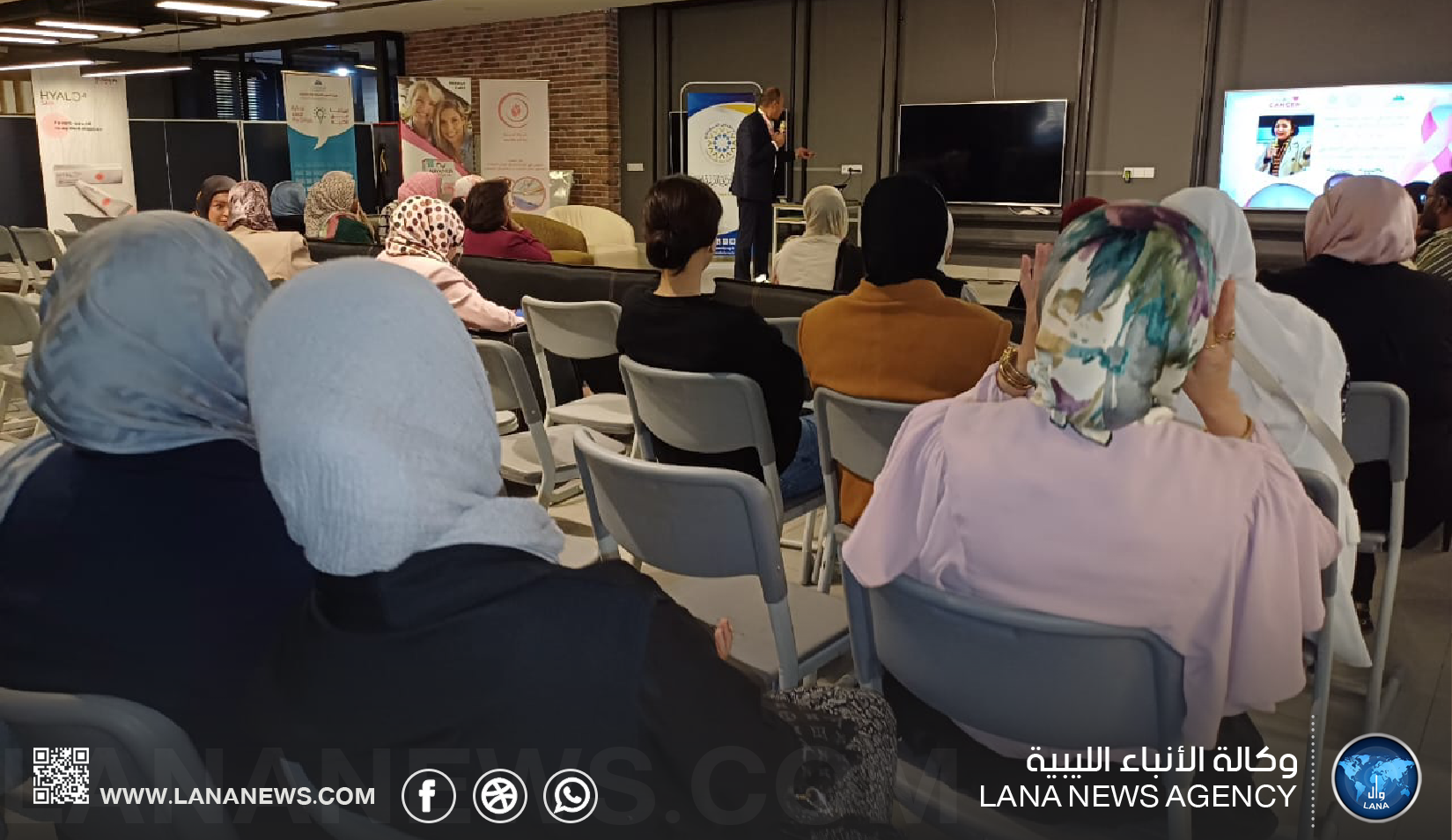 صحيفة الأنباء الليبية تابعت المحاضرات التوعوية التي ألقاها نخبة من الأطباء المتخصصين في الجراحة العامة، والتغذية العلاجية، والفيزياء الطبية، إلى جانب التوعية العلمية. ونبه فيها الحاضرين على أهمية توفير الإمكانيات والأجهزة اللازمة في الحد من مخاطر هذا المرض كالأجهزة العلاجية الإشعاعية، والتي لها أهمية في المراحل العلاجية لمرض سرطان الثدي لإنقاذه حياة الكثير من النساء المصابات، إضافة إلى توفير المعدات الأساسية لبعض المناطق النائية.