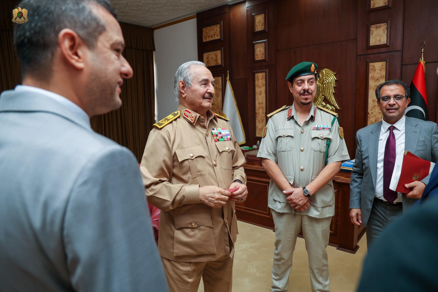 جاء ذلك خلال استقباله لأعضاء مجلس إدارة معرض “ليبيا بيلد” في مكتبه بمقر القيادة العامة في بنغازي، حيث أثنى الحضور على نجاح الدورة الأخيرة للمعرض التي أقيمت في بنغازي، مشيدين بالنهضة العمرانية والاستقرار والأمن الذي تشهده المدينة والمنطقة الشرقية.
