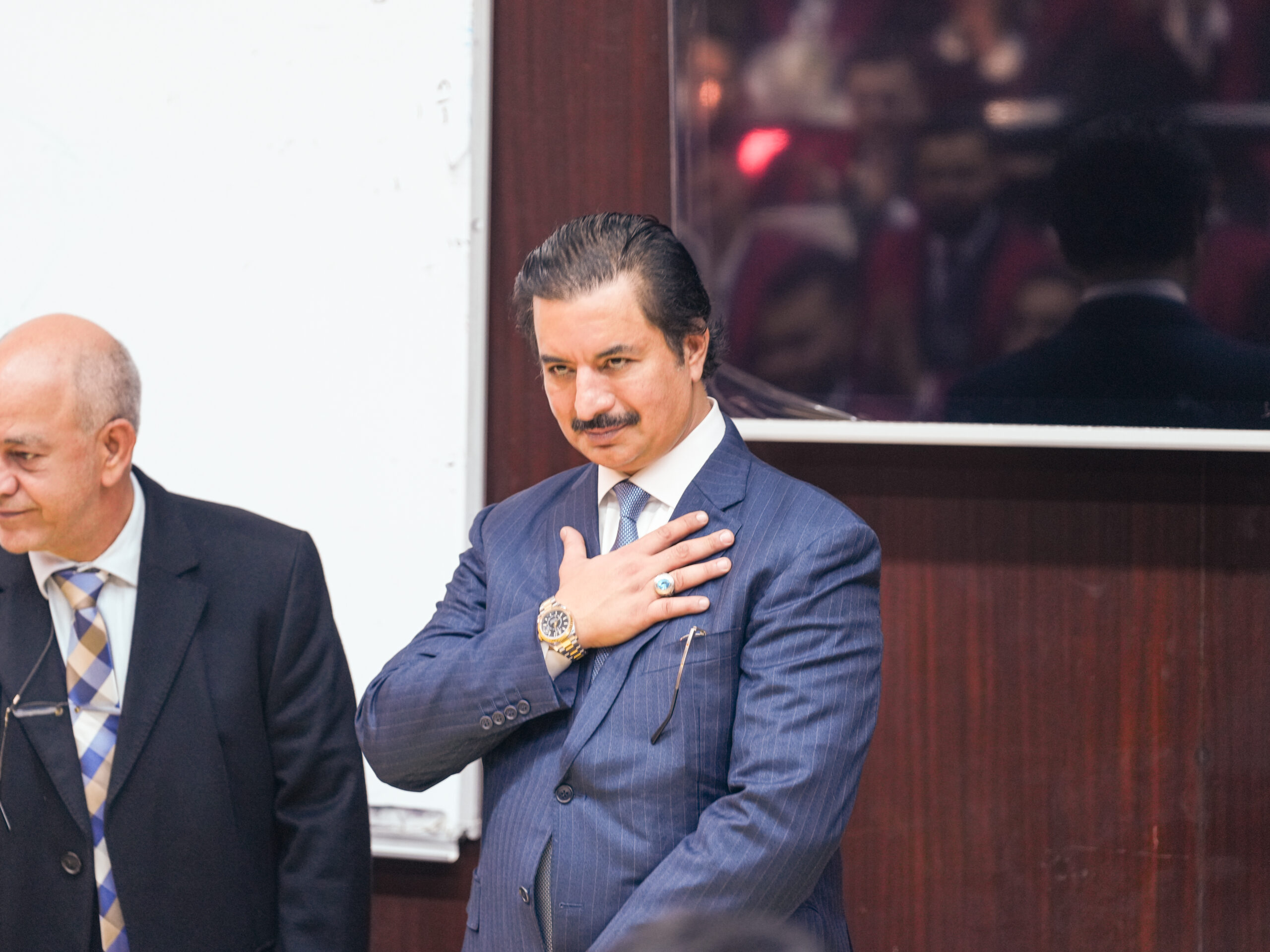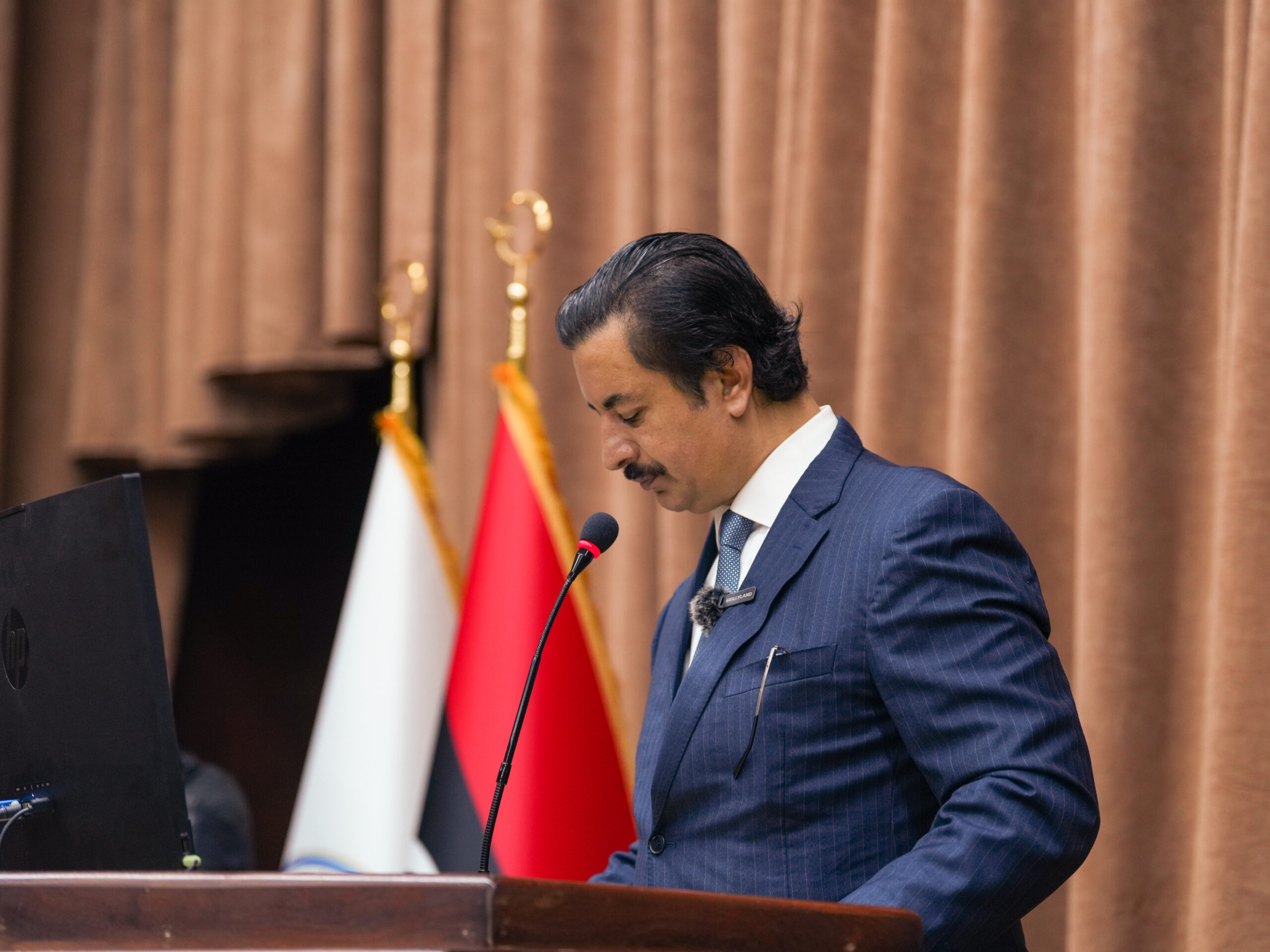 وعبَّر الدكتور حفتر في كلمته أمام الحضور عن سعادته وفخره بالتواجد في هذه المناسبة السعيدة، مشيرًا إلى أن تخرج هؤلاء الأطباء هو إنجاز عظيم.