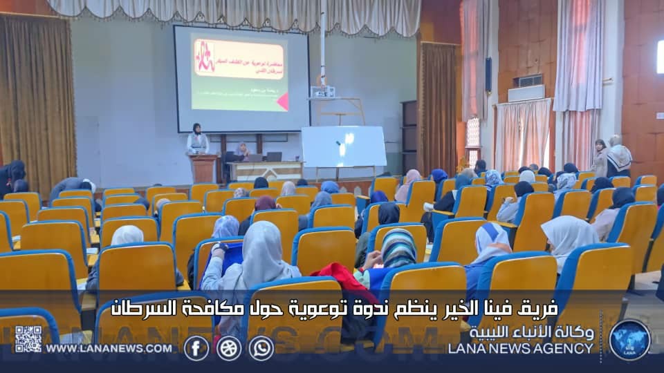 درنة 25 يناير 2025 (الأنباء الليبية) -نظم فريق فينا الخير ندوة توعوية حول مكافحة السرطان بمسرح كلية التقنية الطبية في درنة، بهدف رفع الوعي بمسببات مرض السرطان وطرق الوقاية منه، وشهدت الندوة حضورا من سيدات المجتمع المحلي، حيث تطرقت إلى أهمية التغذية الصحية والدعم النفسي لمكافحة المرض.