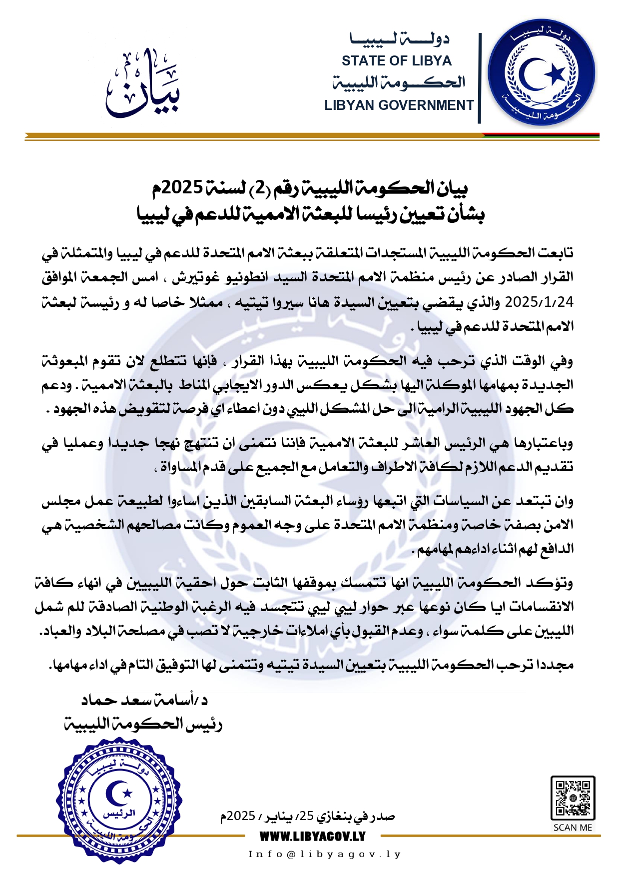 بنغازي 26 يناير 2025 (الأنباء الليبية ) – أصدر رئيس مجلس وزراء الحكومة الليبية، أسامة حماد القرار رقم (12) لسنة 2025 الذي يقضي بتسمية لواء عبد المنعم محمد المهشهش رئيسا لجهاز الحرس البلدي.