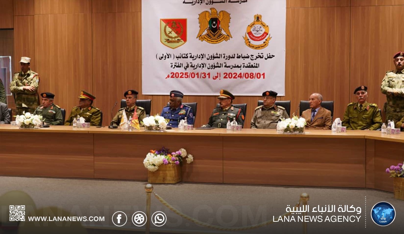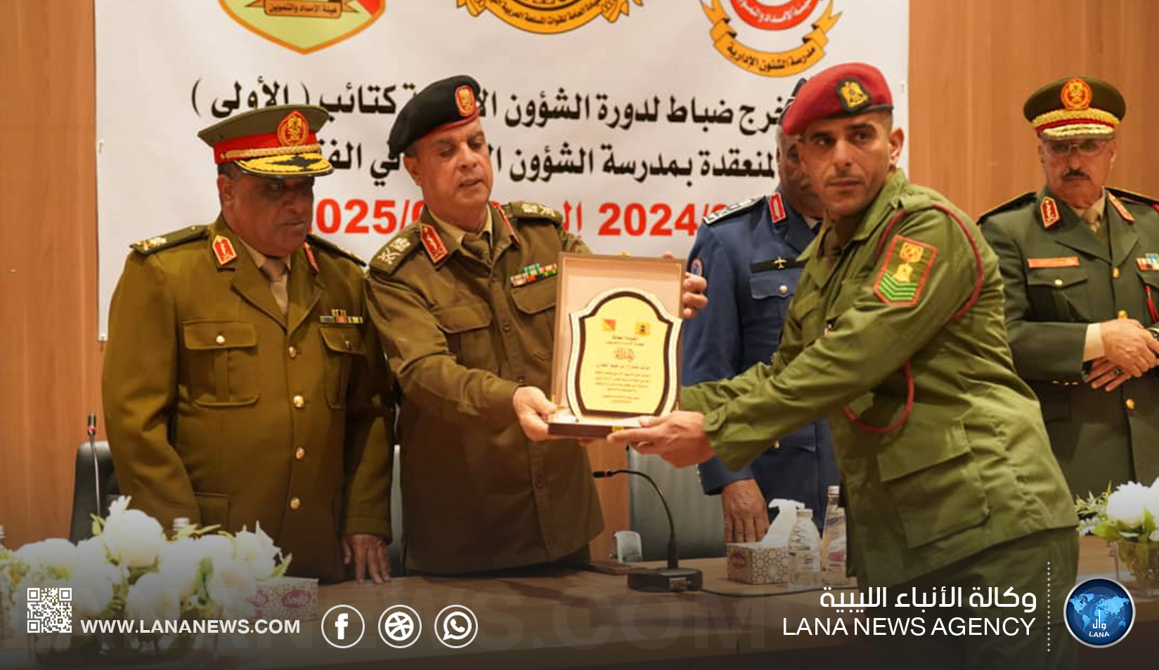 بنغازي 05 فبراير 2025 (الأنباء الليبية)- نظمت مدرسة الشؤون الإدارية التابعة لهيئة الإمداد والتموين بالقيادة العامة للقوات المسلحة اليوم الأربعاء حفل تخريج ضباط دورة الشؤون الإدارية الكتيبة (الأولى)، بقاعة الاقتصاد ببنغازي والتي بدأت فعالياتها في الأول من أغسطس من العام الماضي واستمرت حتى الحادي والثلاثين من يناير 2025.