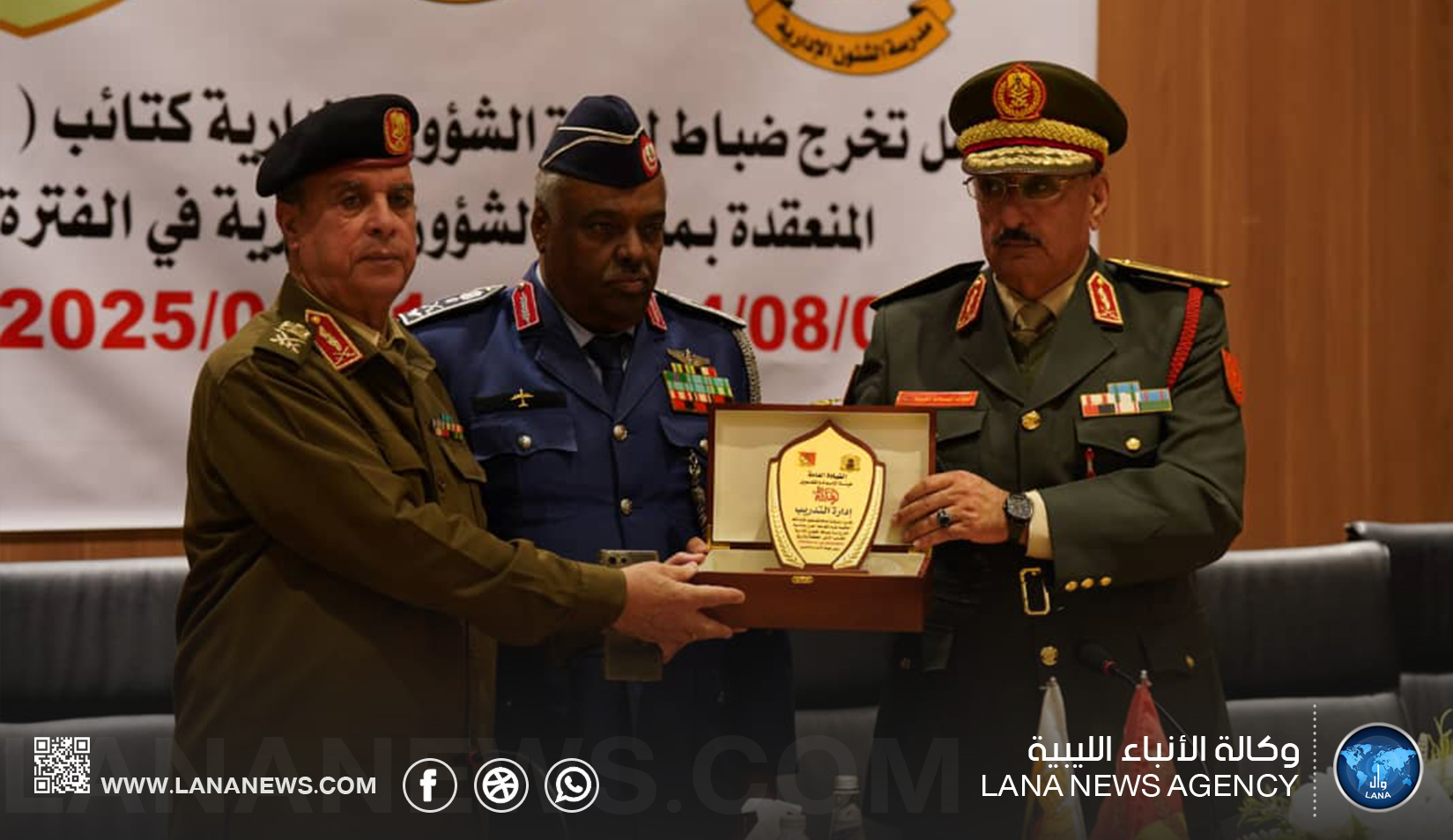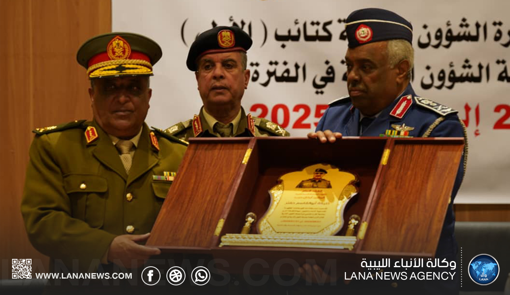 وفي ختام الحفل، قدم اللواء مفتاح النزال درع الوفاء للمشير خليفة حفتر، والذي استلمه بالنيابة المفتش العام الفريق صقر الجروشي، تقديراً لدوره القيادي في دعم القوات المسلحة وتحقيق الإنجازات العسكرية.