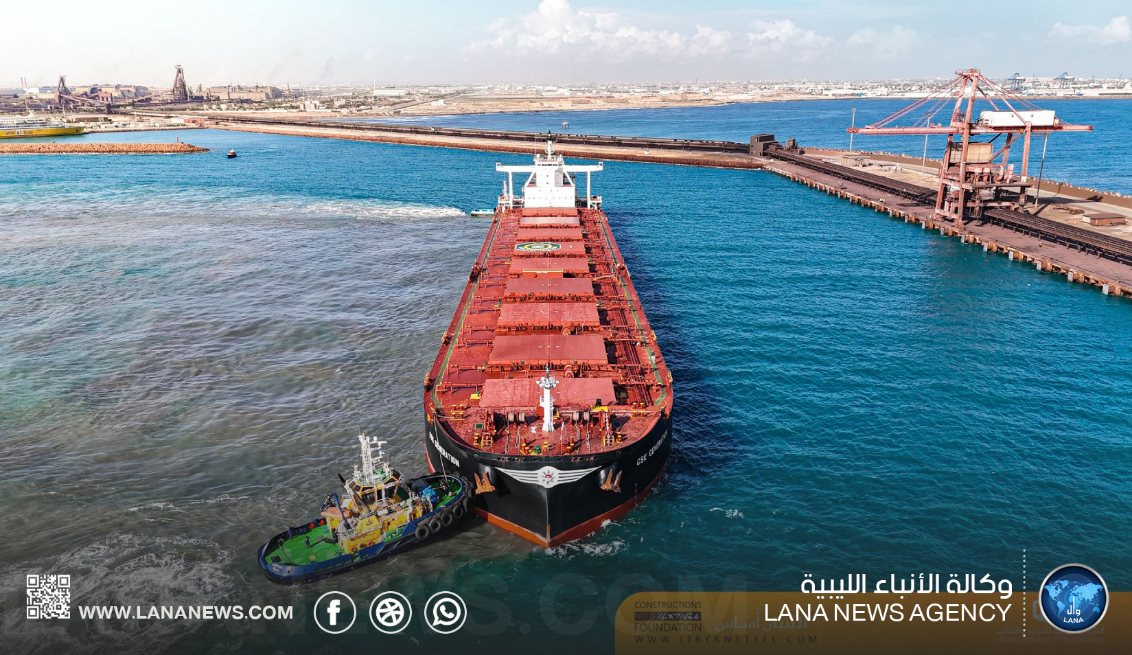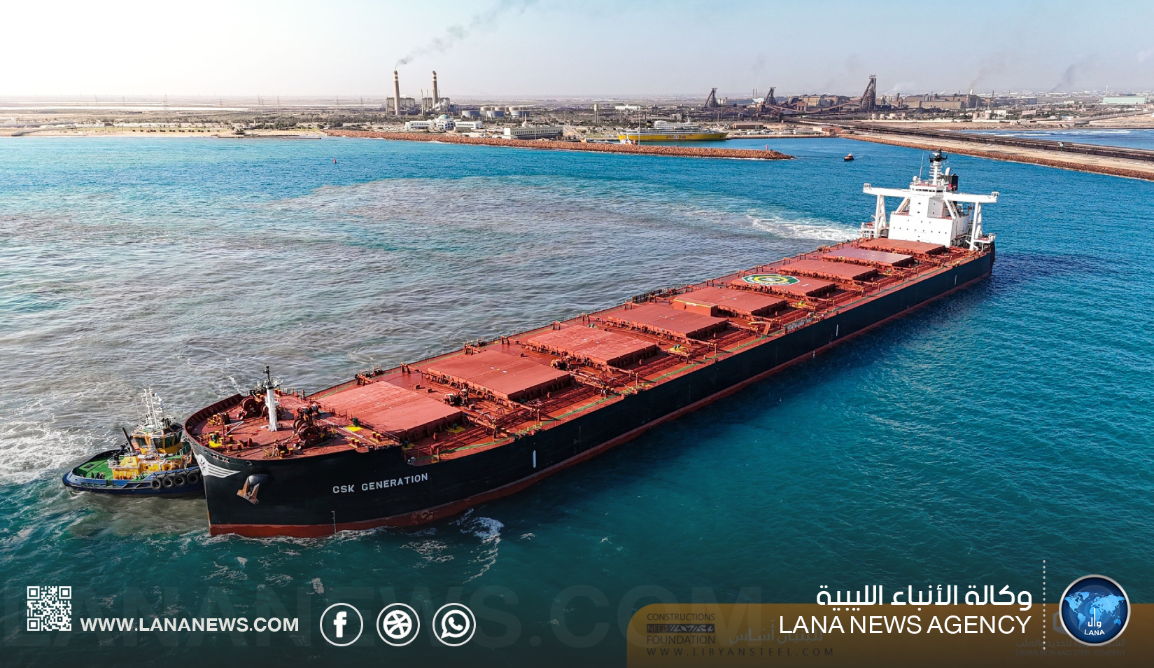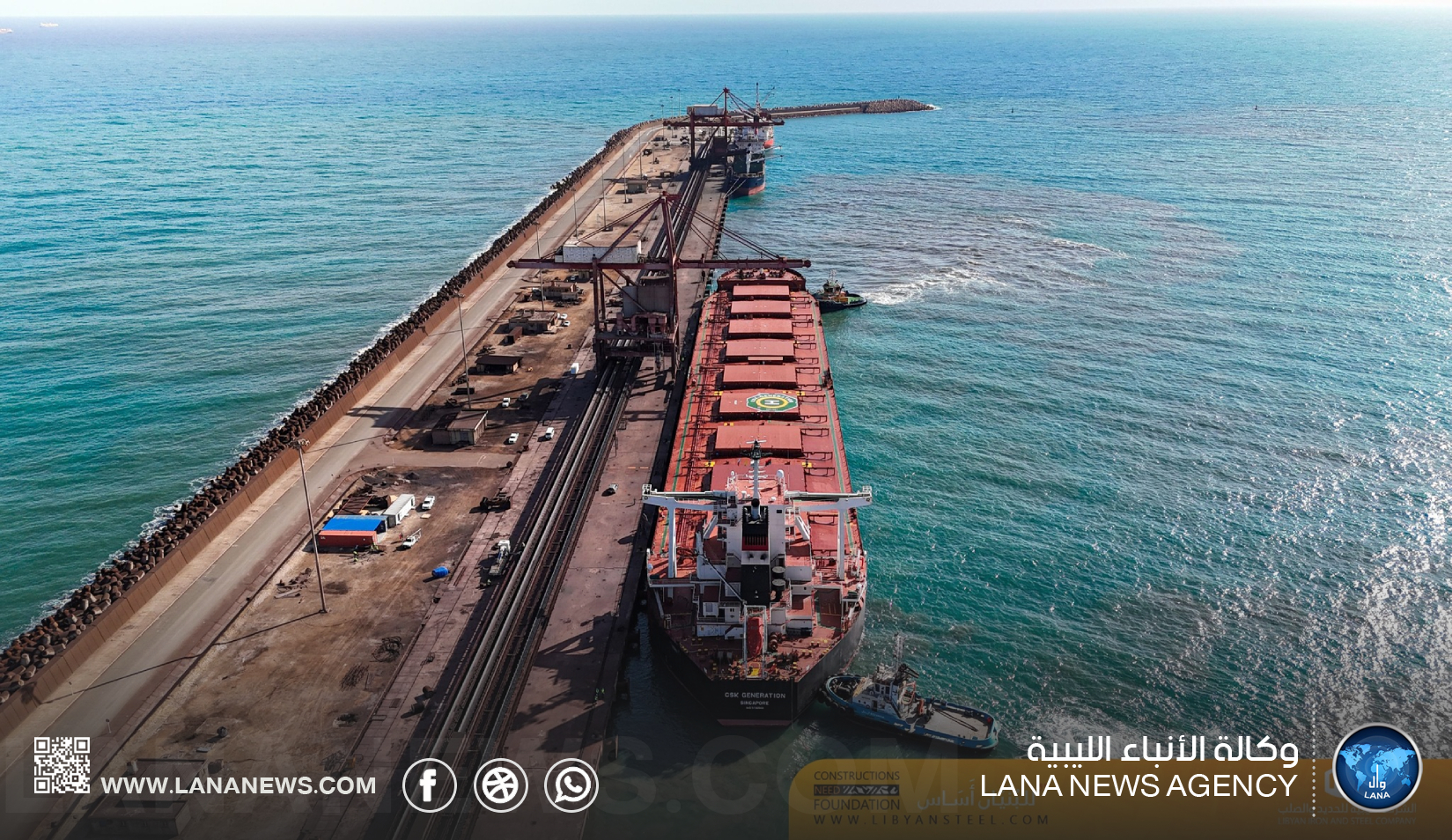 مصراتة 10 فبراير 2025 (الأنباء الليبية) – رست اليوم الإثنين، سفينة CSK GENERATION بميناء الشركة الليبية للحديد والصلب بمصراتة، قادمة من مملكة البحرين، محمّلة بشحنة تقدر بحوالي 162.000 طن من خام مكورات الحديد، وذلك في إطار خطط الإمداد المستمرة لدعم عمليات الإنتاج بالشركة.