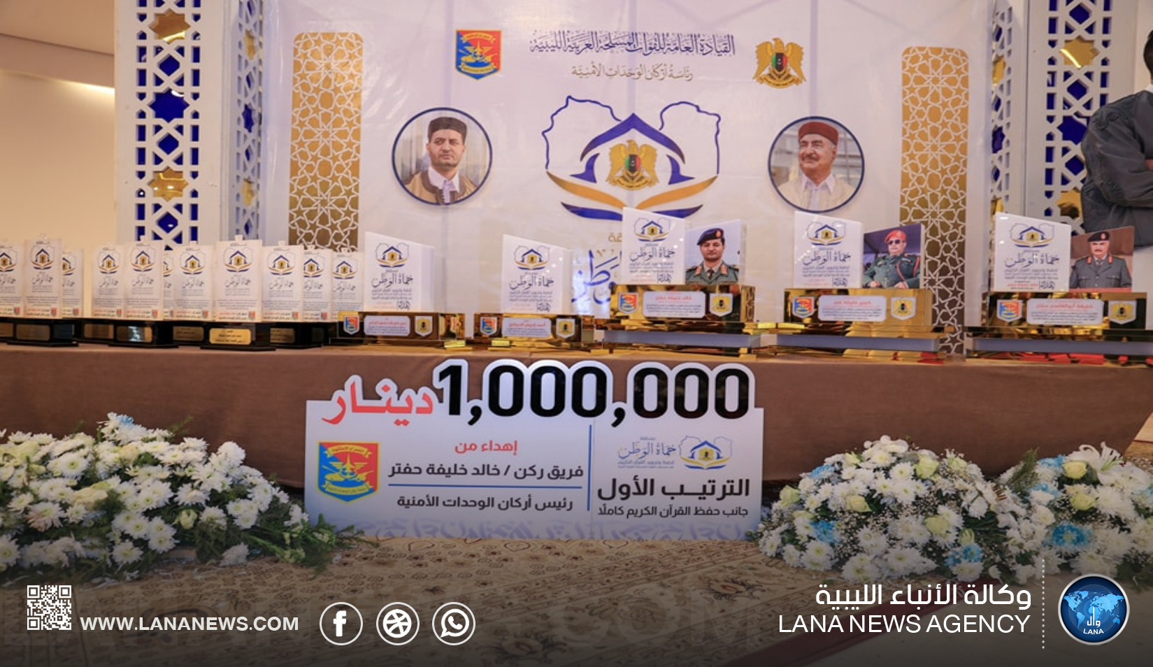 بنغازي 18 مارس 2025 (الأنباء الليبية) – اختتمت بمدينة بنغازي، مسابقة “حُماة الوطن” لحفظ القرآن الكريم، التي أقيمت برعاية رئاسة أركان الوحدات الأمنية.
