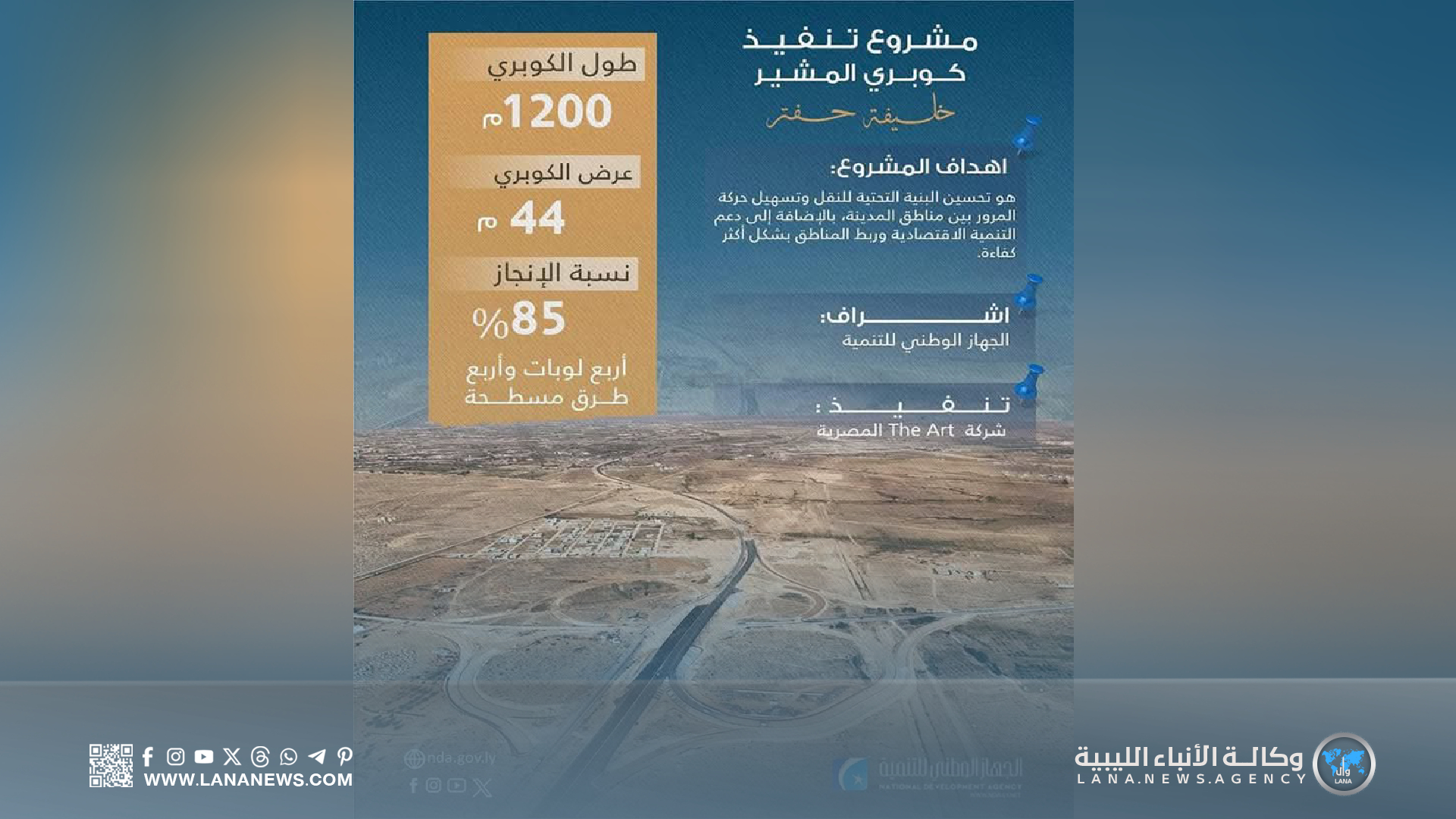 ويُنتظر أن يُسهم المشروع في تحسين بنية النقل التحتية وتسهيل حركة المرور، مما سيُعزز التنمية الاقتصادية في المنطقة. (الأنباء الليبية – سرت) م أ / ر ت