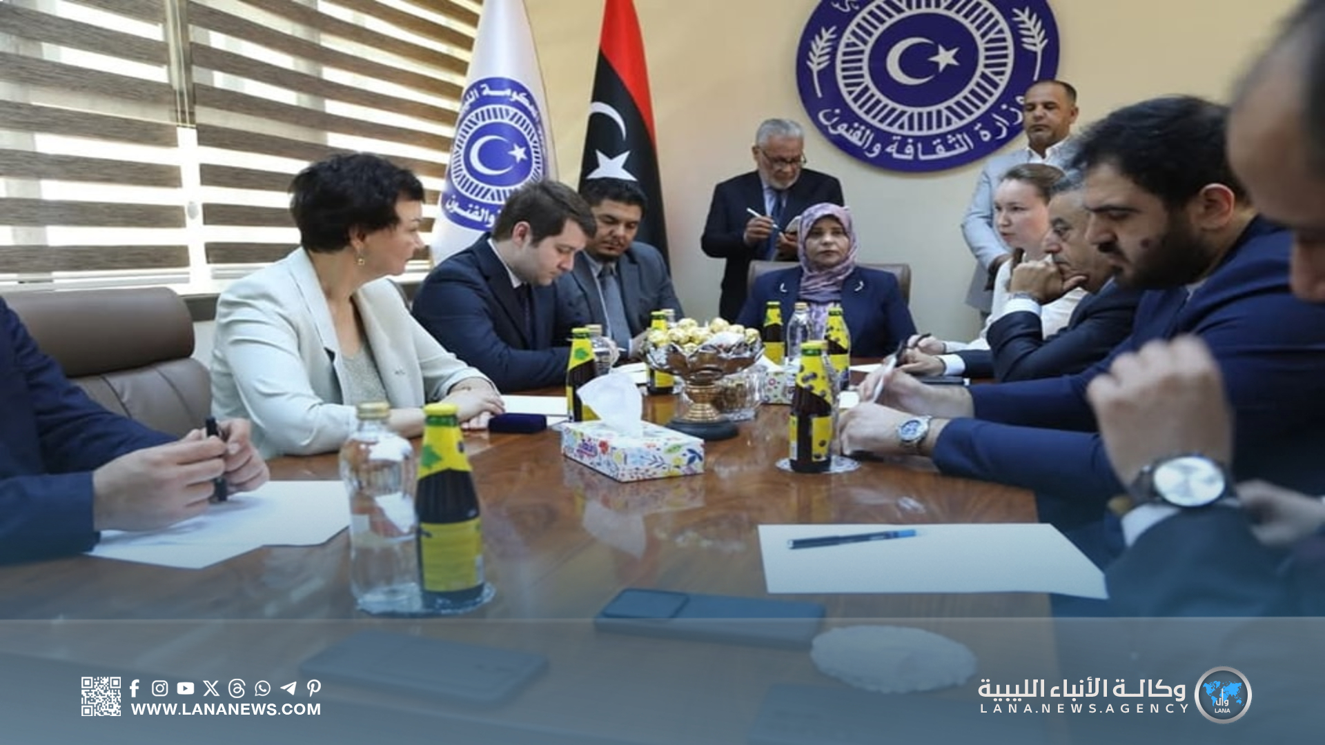 تصريحات الوزيرة، جاءت خلال استقبالها بمقر ديوان الوزارة في بنغازي، الوفد الروسي المكلّف باستحداث البيت الثقافي الروسي، برئاسة رئيسة المركز الروسي للدبلوماسية الشعبية، ناتاليا كروسوفيسكا، والوفد المرافق لها، بحضور مدير الإدارة الأوروبية بوزارة الخارجية والتعاون الدولي، الدكتور عادل إبراهيم بكار، إلى جانب مديري الإدارات والمراكز بالوزارة ومدير مكتب الوزيرة.