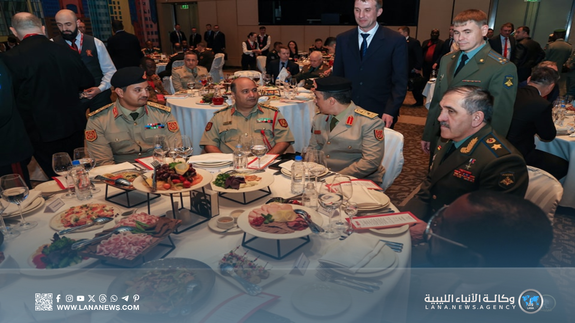 موسكو 09 مايو 2025 (الأنباء الليبية) – شارك وفد من القيادة العامة للقوات المسلحة الليبية، في مأدبة العشاء الرسمية التي أقامها وزير الدفاع الروسي أندريه بيلوسوف، على شرف الوفود العسكرية المشاركة في العرض العسكري السنوي بمناسبة عيد النصر، الذي سيُقام في العاصمة الروسية موسكو.