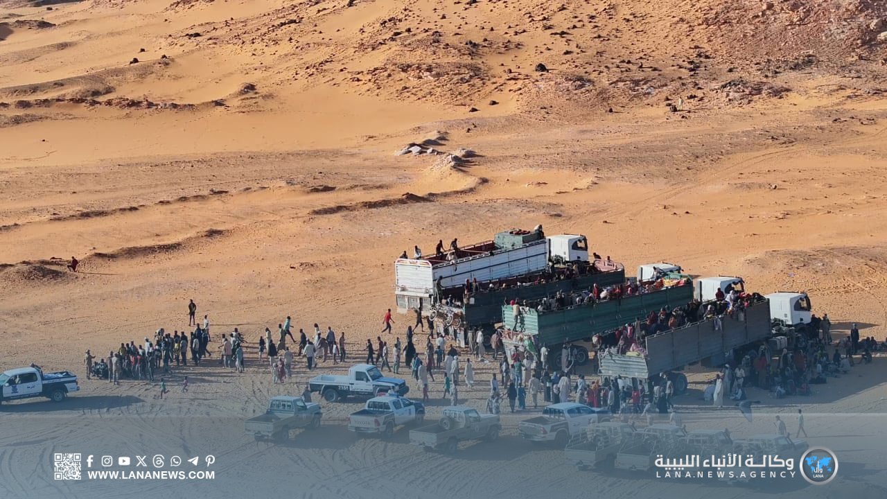 وأوضح بأنه تسلم أعداد النازحين السودانيين من دوريات كتيبة «سبل السلام» وقام بنقلهم الى مقر فرع جهاز الهجرة غير الشرعية في مدينة الكفرة.