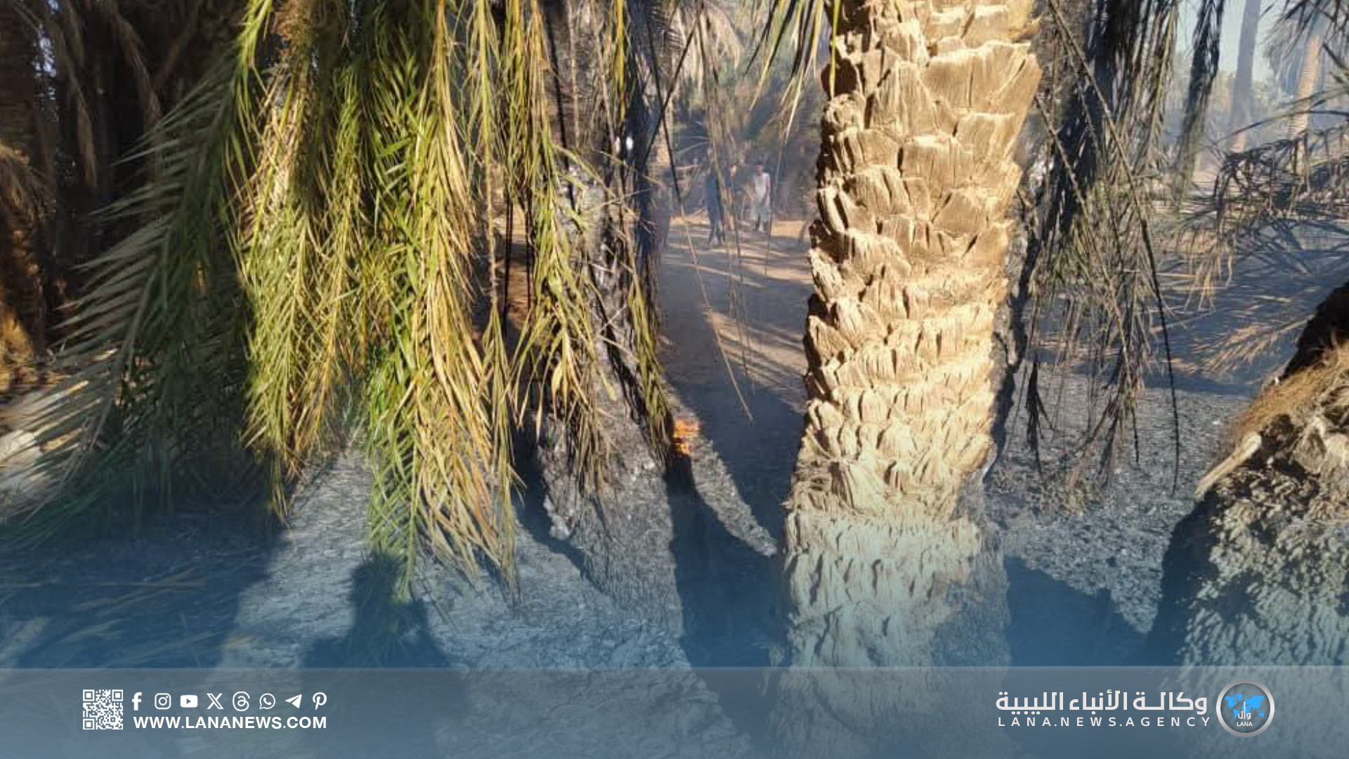مرادة 26 يونيو 2025 (الأنباء الليبية) -اندلع مساء أمس الأربعاء حريق في مزرعة نخيل تابعة لهيئة الأوقاف بمنطقة مرادة، في تمام الساعة الخامسة عصرا، ما أسفر عن احتراق عدد كبير من أشجار النخيل في مساحة زراعية واسعة، ضمن نطاق اختصاص فرع جهاز الشرطة الزراعية إجدابيا.