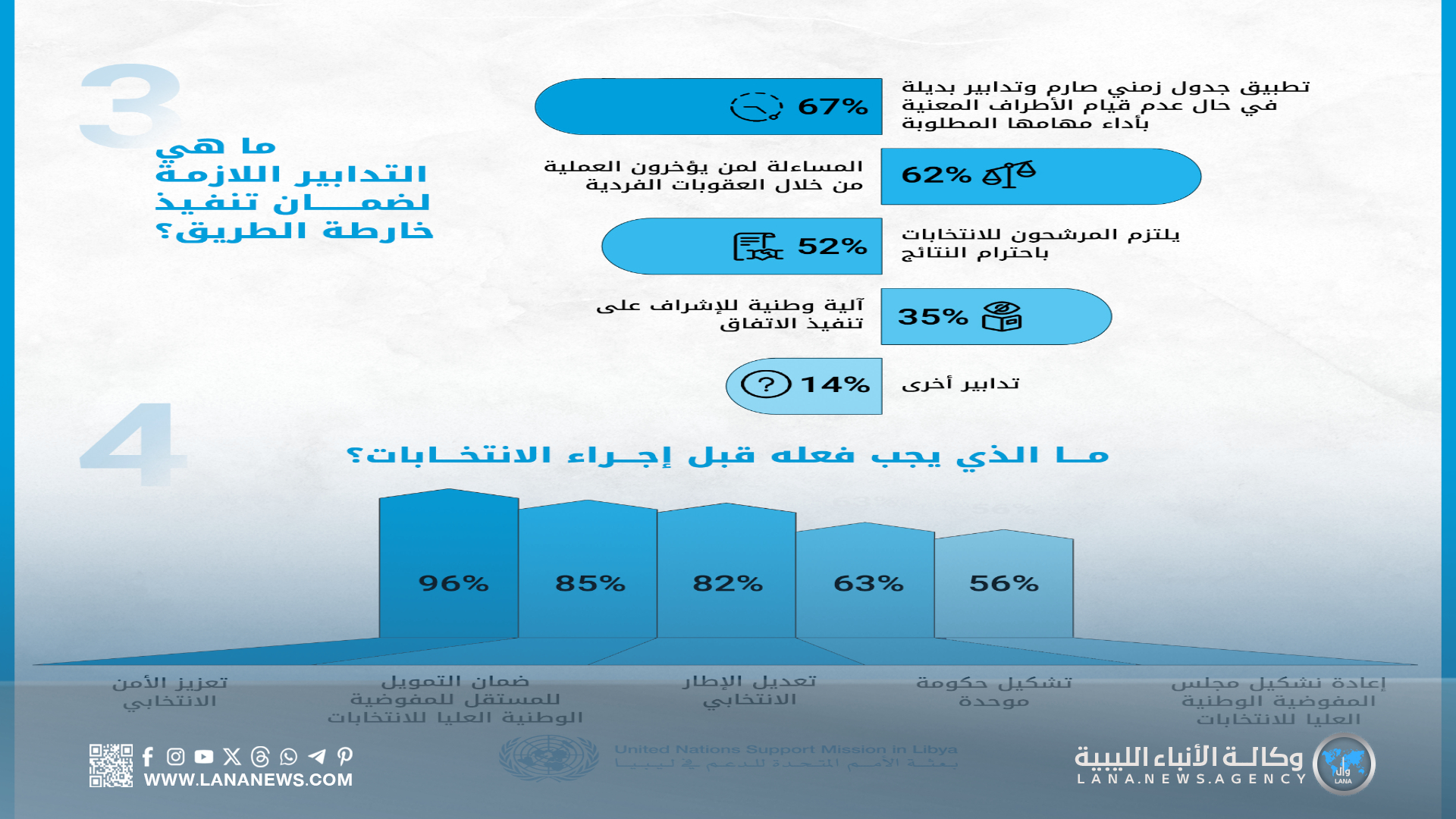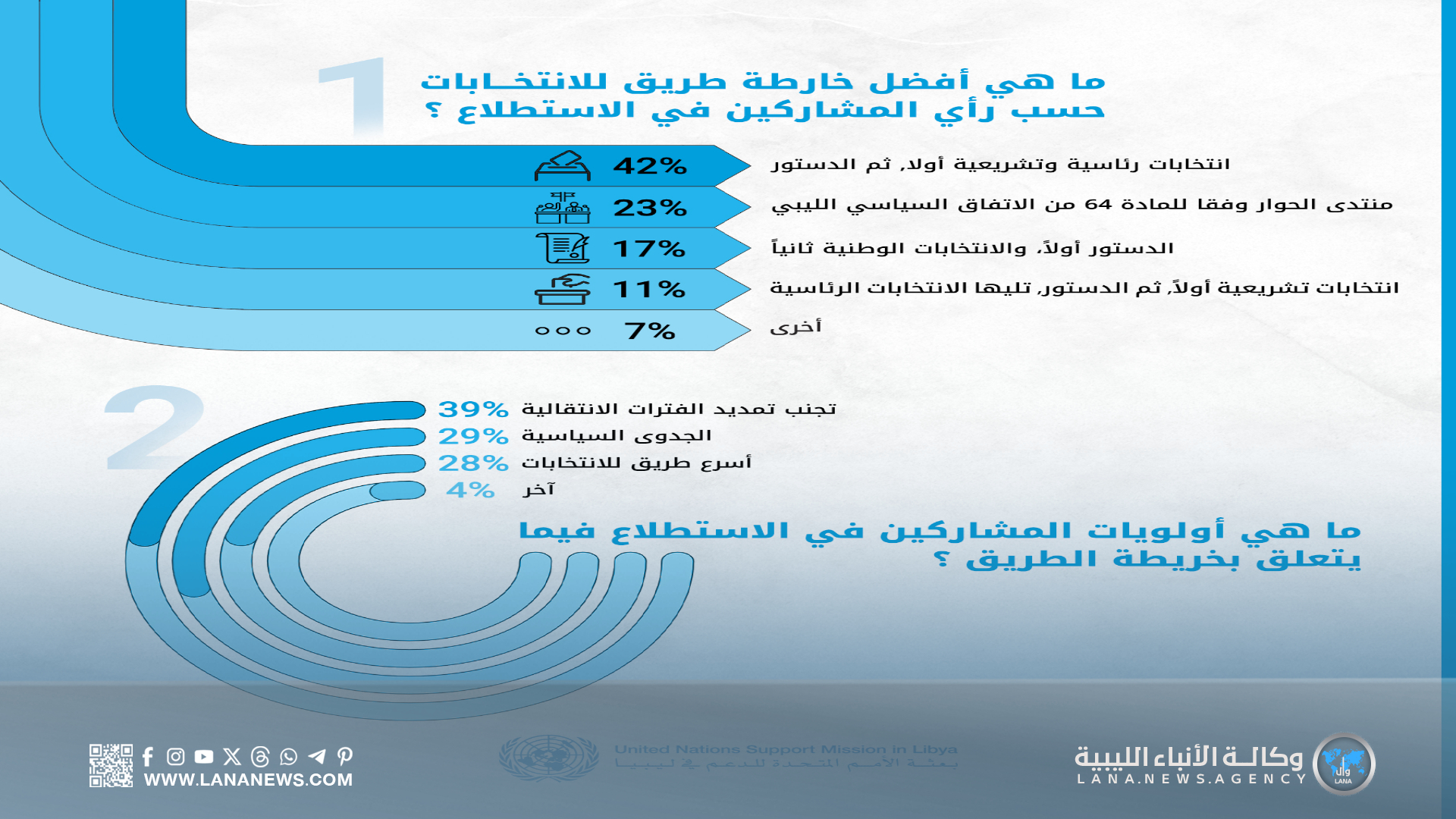 بينما حصل المقترح الرابع، الذي يدعو إلى حل المؤسسات الحالية، وتشكيل هيئة تنفيذية جديدة عبر منتدى حوار، على 23 % من الأصوات. (الأنباء الليبية – طرابلس) ر ت