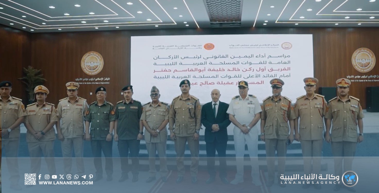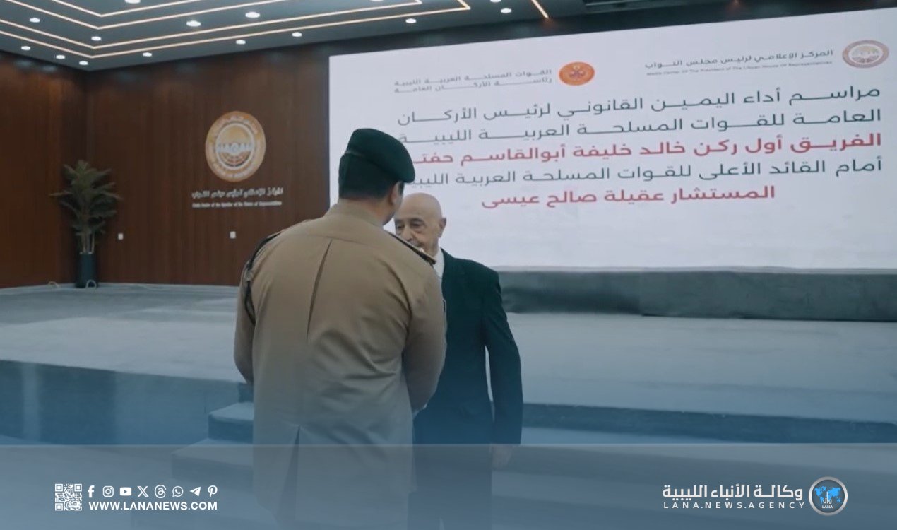 القبة 21 أغسطس 2025 (الأنباء الليبية) – أدى الفريق أول خالد حفتر، اليوم الخميس، اليمين القانونية رئيسًا للأركان العامة بالقوات المسلحة أمام رئيس مجلس النواب والقائد الأعلى للقوات المسلحة المستشار عقيلة صالح.