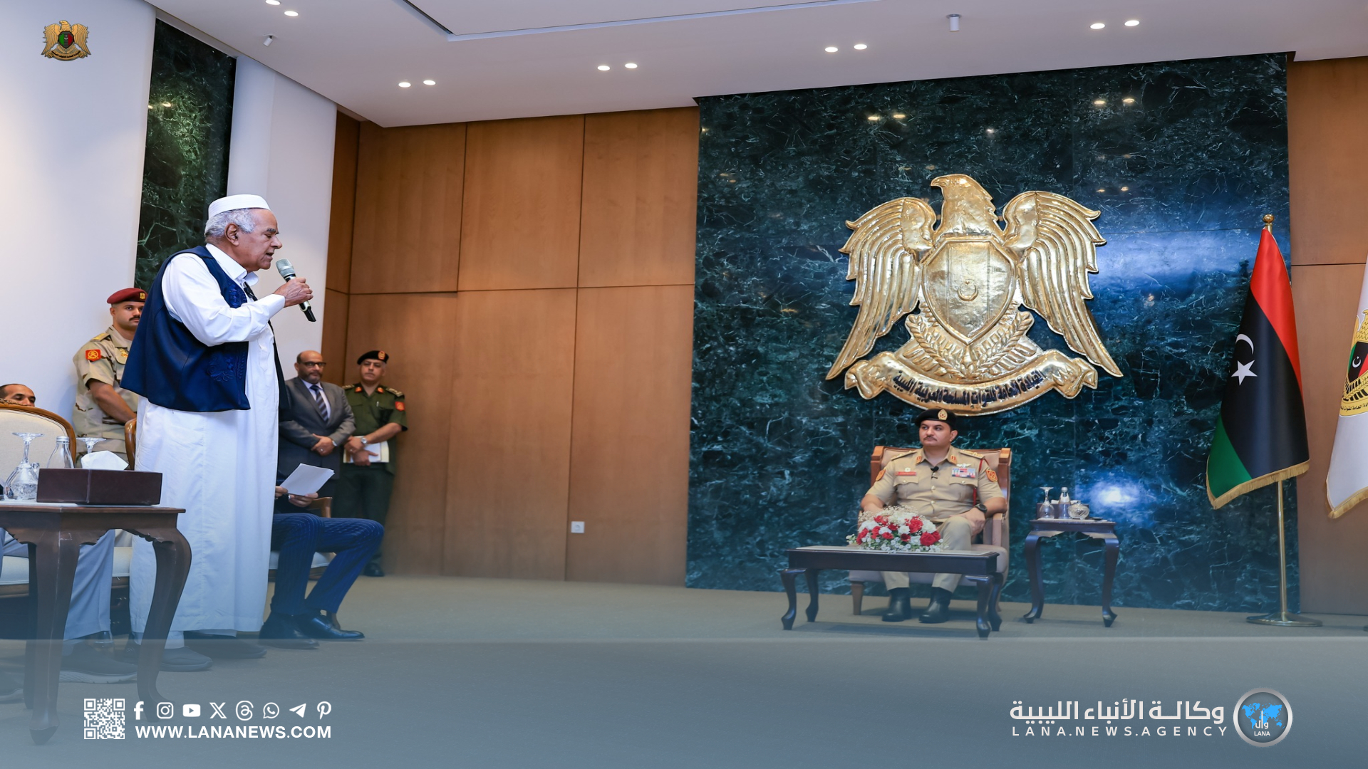 ونقل نائب القائد العام تحيات القائد العام، المشير خليفة حفتر، مُعبرًا عن فخر القيادة العامة بمواقف القبيلة الوطنية وتضحياتها في سبيل أمن واستقرار الوطن.