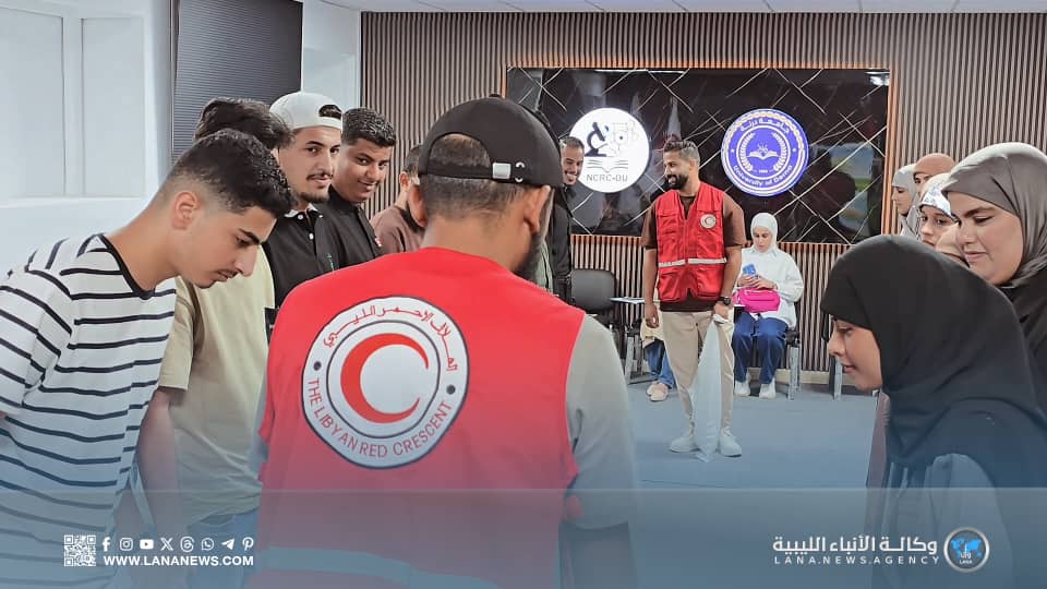 درنة 22 سبتمبر 2025 (الأنباء الليبية) – انطلقت اليوم الإثنين، فعّاليات الدورة التدريبية في الإسعافات الأولية بعنوان “طلابنا مسعفون” – الموسم الرابع، التي ينظمها فرع الهلال الأحمر الليبي بدرنة، بالتعاون مع مكتب خدمة المجتمع والبيئة بجامعة درنة.