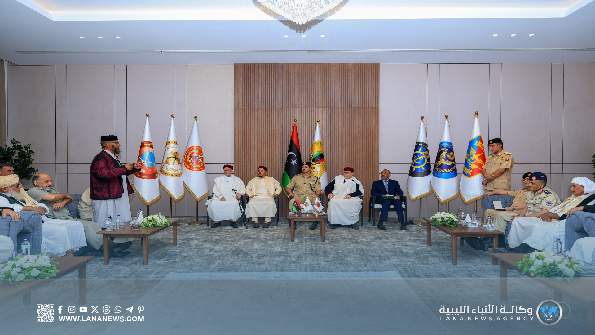 يأتي اللقاء في إطار التواصل المستمر بين القيادة العامة للقوات المسلحة، والمكونات الاجتماعية الداعمة للمسار الوطني، وتعزيز أواصر الوحدة الوطنية. (الأنباء الليبية – بنغازي) ر ت