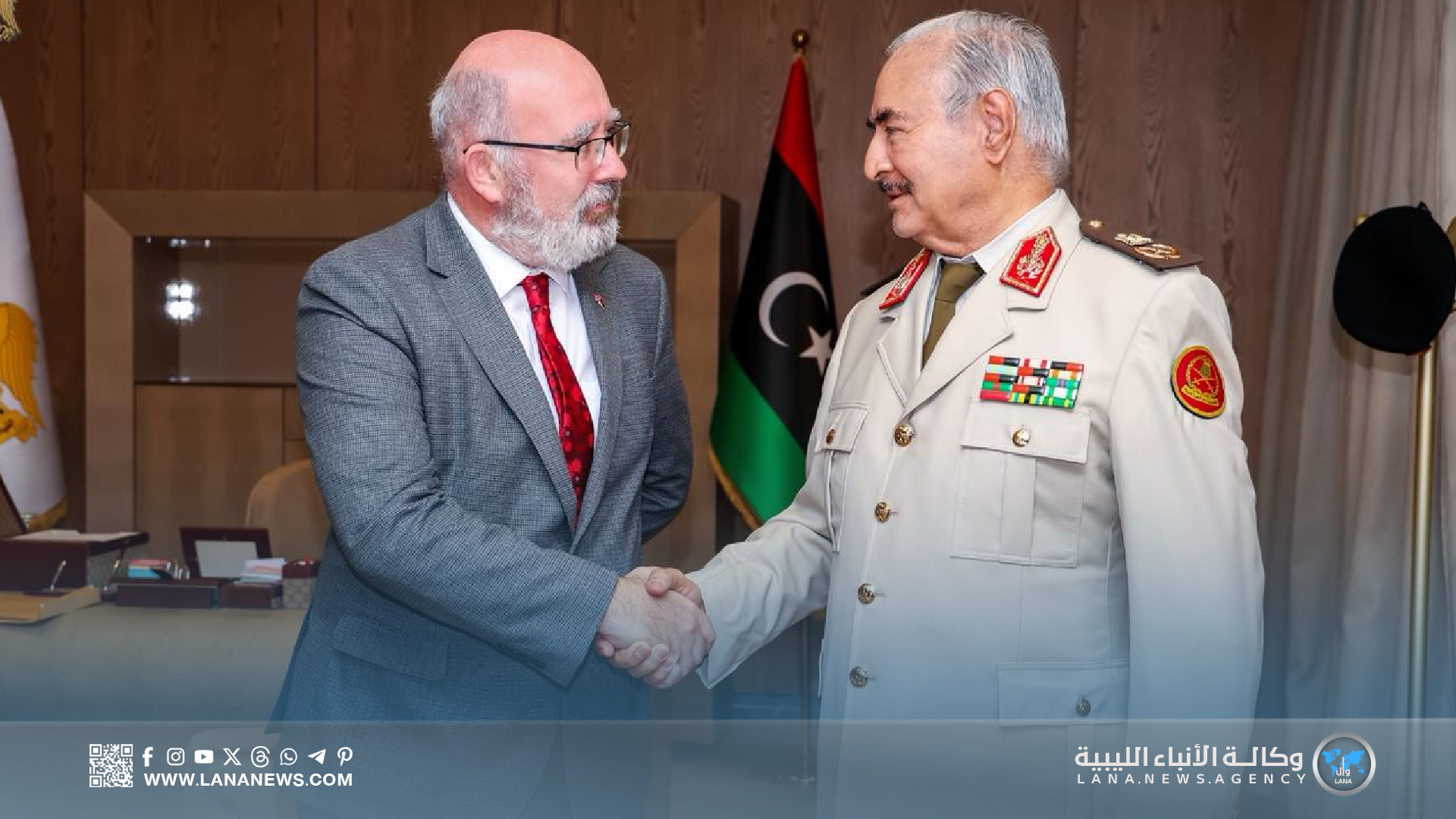 بنغازي 14 أكتوبر 2025 0الأنباء الليبية) – استقبل القائد العام للقوات المسلحة، المشير أركان حرب خليفة حفتر، اليوم الثلاثاء، بمقر القيادة العامة، سفير المملكة المتحدة لدى ليبيا مارتن أندرو والوفد المرافق له، لمناقشة مستجدات العملية السياسية في البلاد.