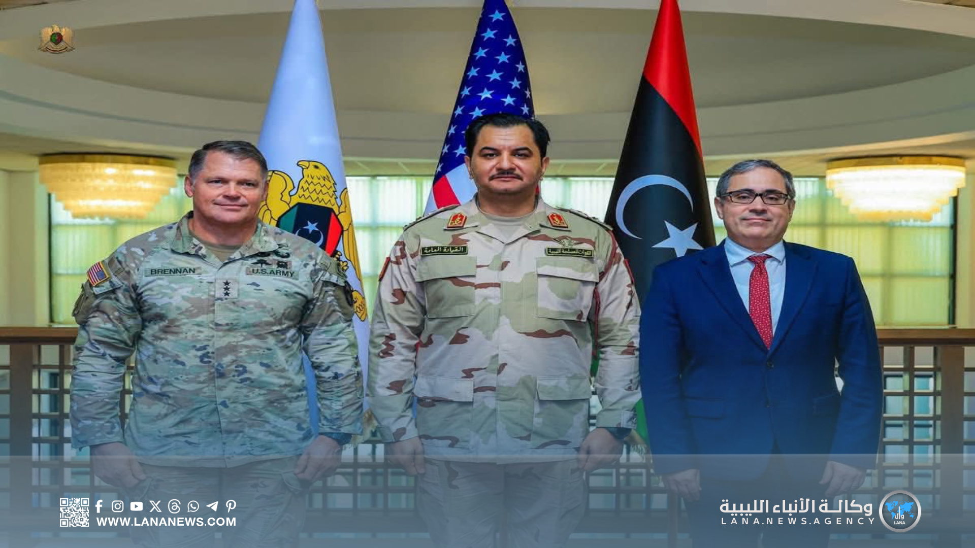 سرت 14 أكتوبر 2025 (الأنباء الليبية) – التقى نائب القائد العام، الفريق أول ركن صدام خليفة، بمدينة سرت، نائب قائد القيادة الأمريكية في أفريقيا (أفريكوم) الفريق جون برينان، بحضور القائم بأعمال السفارة الأمريكية لدى ليبيا، جيريمي برنت، وعددٍ من المسؤولين من الجانبين.