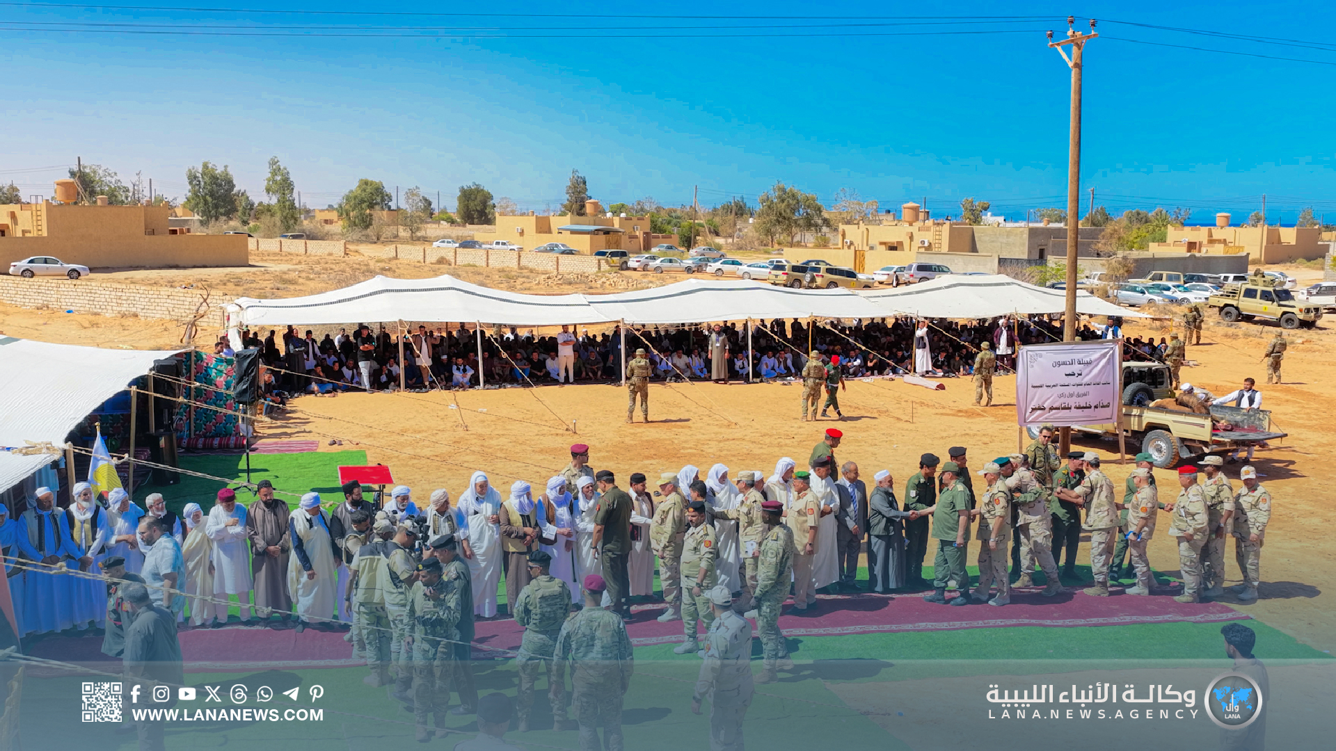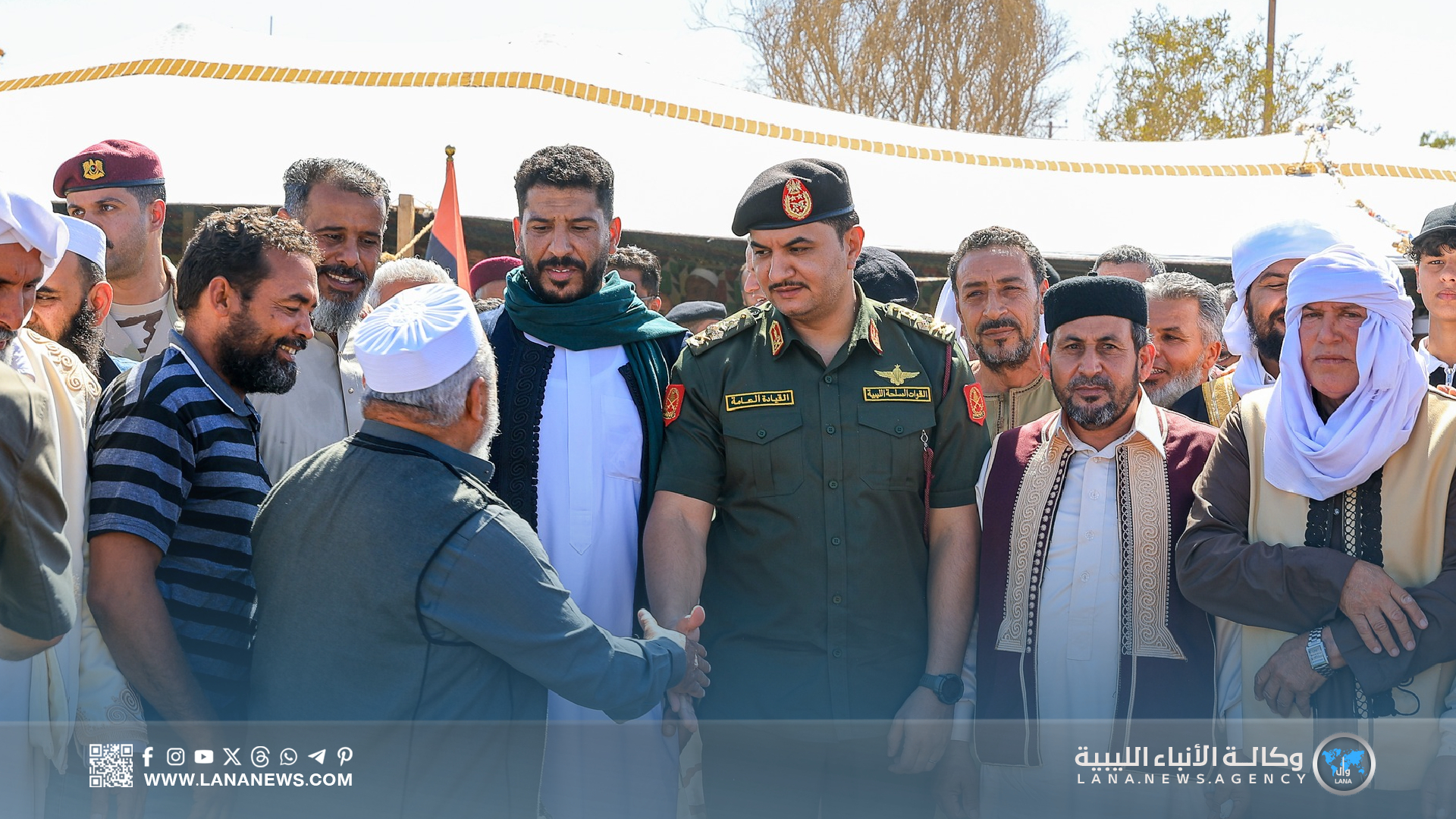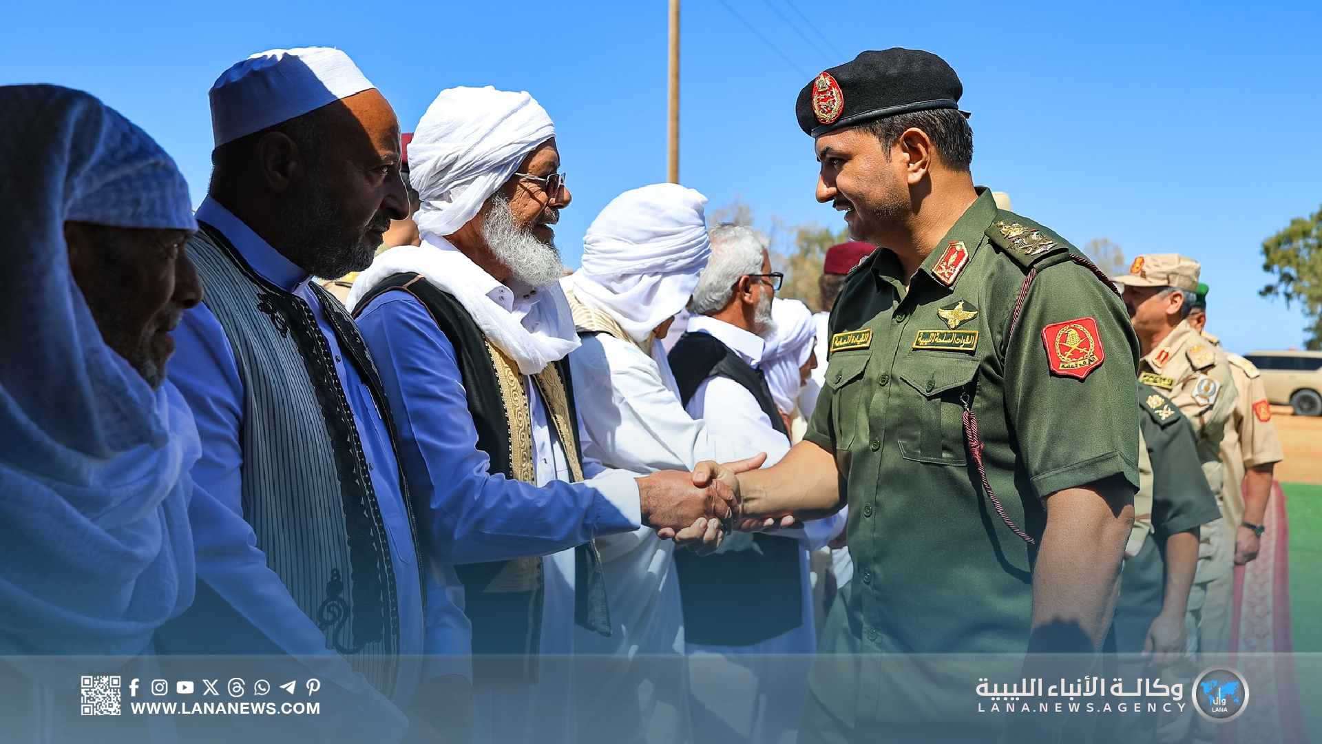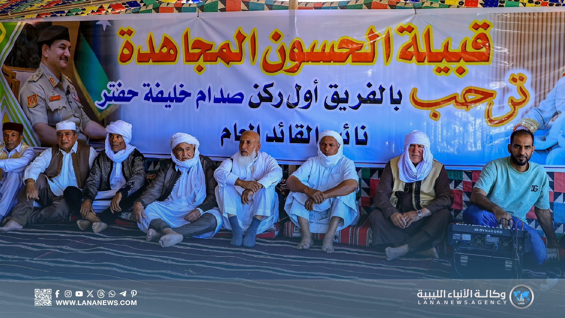 وأكد نائب القائد العام على مكانة قبيلة الحسون في النسيج الاجتماعي الليبي، مشيدا بدعمها للقوات المسلحة وتضحيات أبنائها خلال معركة الكرامة، مشيرا إلى أن هذه الزيارات تأتي تنفيذا لتوجيهات القائد العام المشير أركان حرب خليفة حفتر للتواصل المباشر مع المواطنين، والاستماع إلى مطالبهم عن قرب، والاطلاع على أوضاعهم ميدانيا، مؤكدا التزام القيادة العامة بحماية الوطن والحفاظ على استقراره. (الأنباء الليبية) س خ.