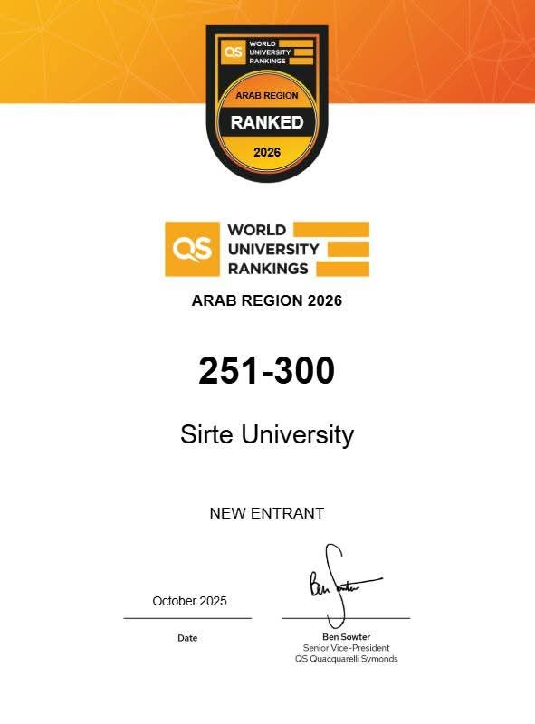 سرت 16 أكتوبر 2025 (الأنباء الليبية) – أعلن مدير مكتب الإعلام بجامعة سرت عبد الحليم الشاطر أنضمام جامعة سرت رسمياً للتصنيف العالمي للجامعات العربية لعام 2026.