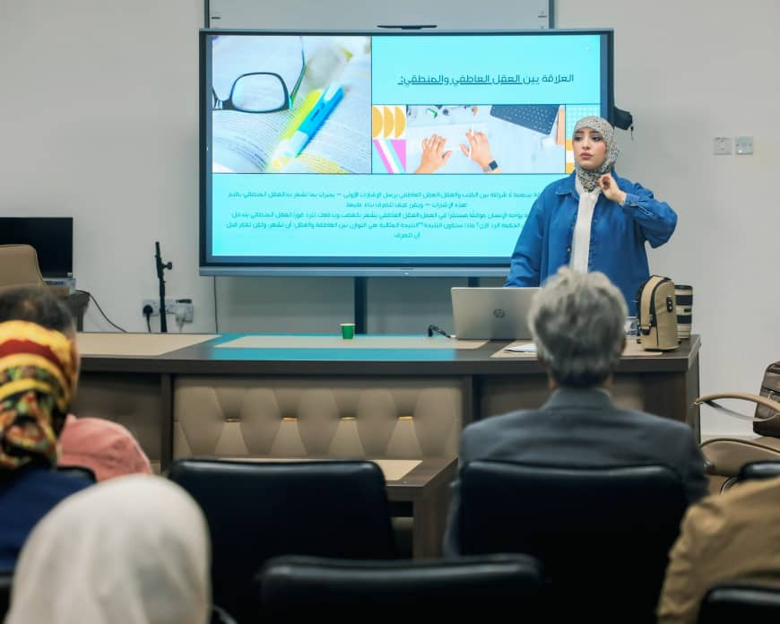 وشملت الفعّالية جلسة فكرية ومحاضرة توعوية بعنوان “إدارة المشاعر: وعي أكثر وقلق أقل”، قدمتها خبيرة التنمية البشرية ومستشارة التدريب الدكتورة سهام البرعصي.