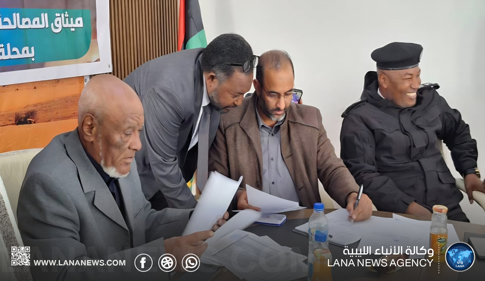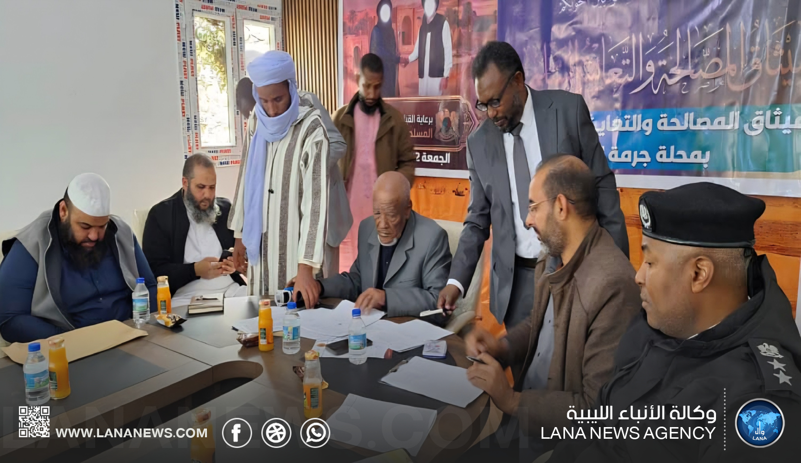 جرمة 03 فبراير 2026 (الأنباء الليبية) – استكمالًا لجهودها السابقة في تنفيذ بنود ميثاق الصلح الأهلي الموقع مسبقًا بمحلة جرمة، قامت اللجنة المكلفة من قبل نائب القائد العام، اليوم الثلاثاء بقاعة ديوان المجلس البلدي بجرمة، بإتمام إجراءات تنفيذ بنود الصلح المتعلقة بجبر الضرر، بحضورِ لفيفِ من المكونات الاجتماعية بالمحلة.