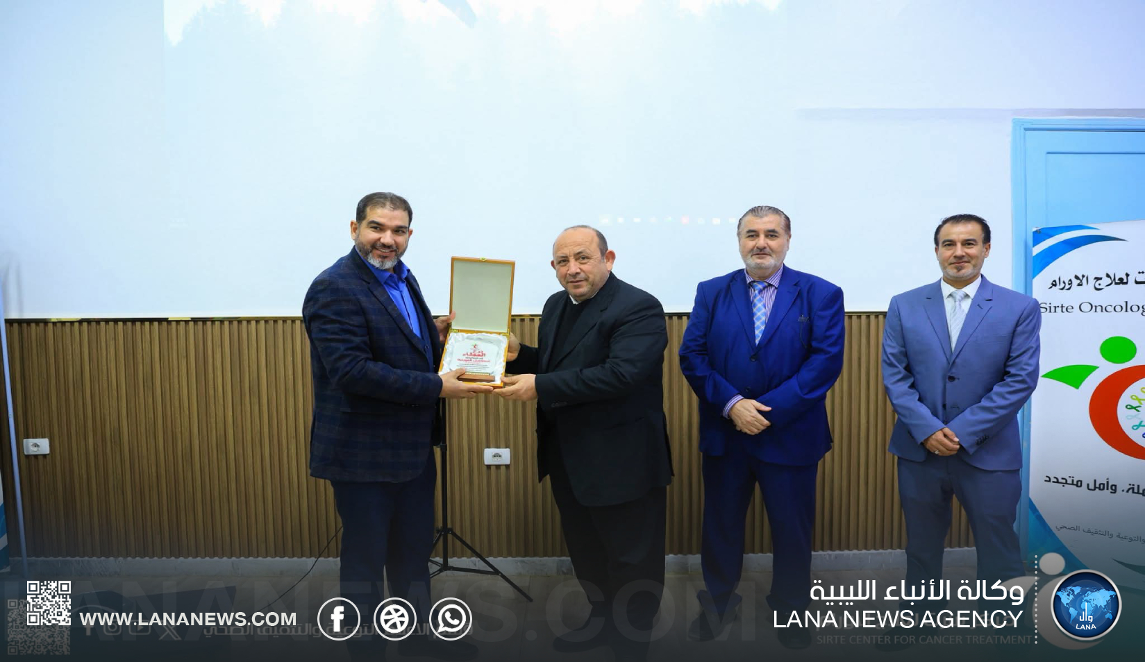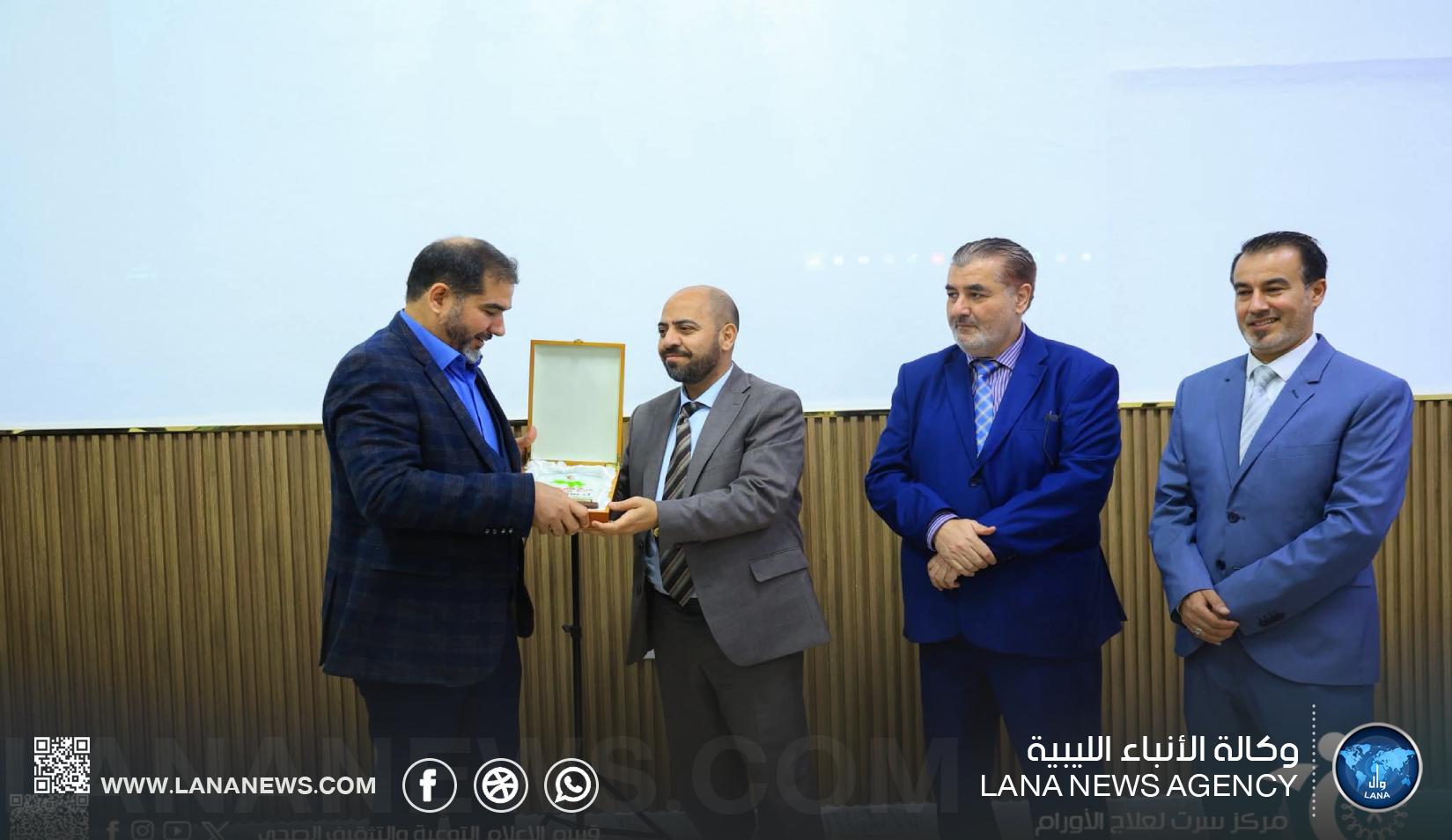 سرت 03 فبراير 2026 (الأنباء الليبية) – كرّمت إدارة مركز سرت لعلاج الأورام، اليوم الثلاثاء، وفد المجلس العربي للاختصاصات الصحية، برئاسة رئيس مجلس الأمناء، إلى جانب فريق الاعتماد البرامجي وأعضاء اللجنة المكلفة بتقييم برامج المركز، في ختام زيارتهم الرسمية.