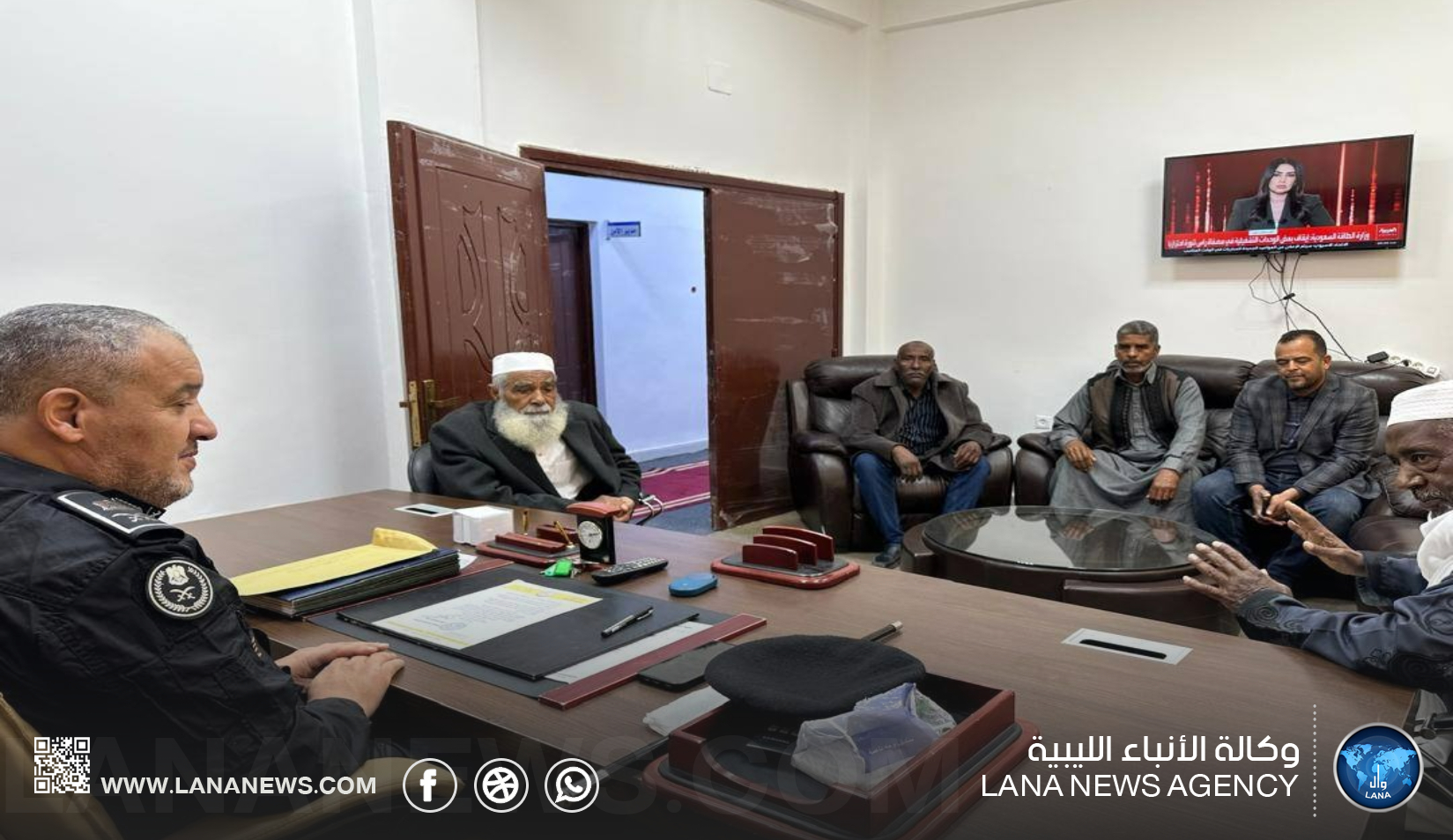 سبها 02 مارس 2026 (الأنباء الليبية) – بحث مدير أمن مرزق، اللواء آدم الدرسى، مع مختار محلة مجدول وعددٍ من الحكماء والأعيان الأوضاع الأمنية بالمحلة، وسُبل تعزيز الاستقرار، خلال اجتماع عُقد بمكتبه ببلدية مرزق.