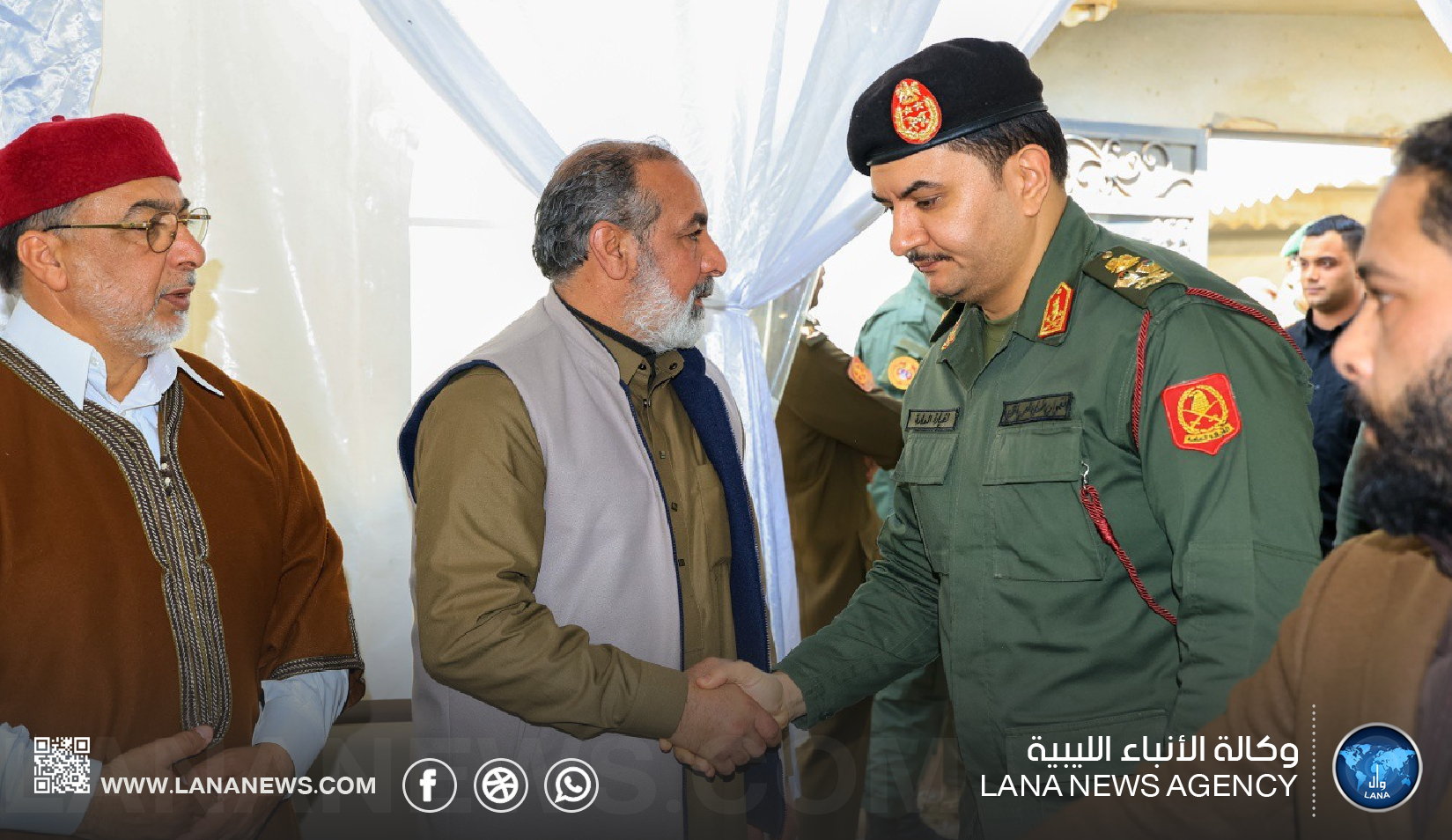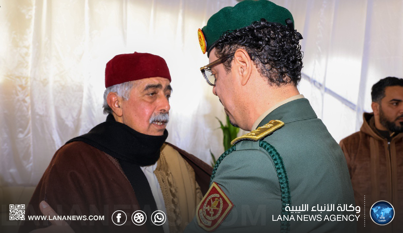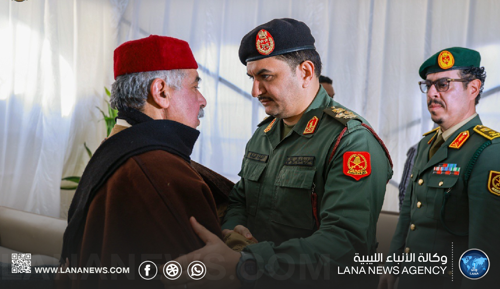 بنغازي 29 مارس 2026 (الأنباء الليبية) – قدم نائب القائد العام للقوات المسلحة الفريق أول ركن صدام حفتر، ورئيس الأركان العامة الفريق أول ركن خالد حفتر، ومدير مكتب القائد العام الفريق أول أيوب بوسيف، رفقة وفد رفيع من القيادة العامة، واجب العزاء لمستشار الأمن القومي السيد عبدالرازق الناظوري في وفاة والدته.