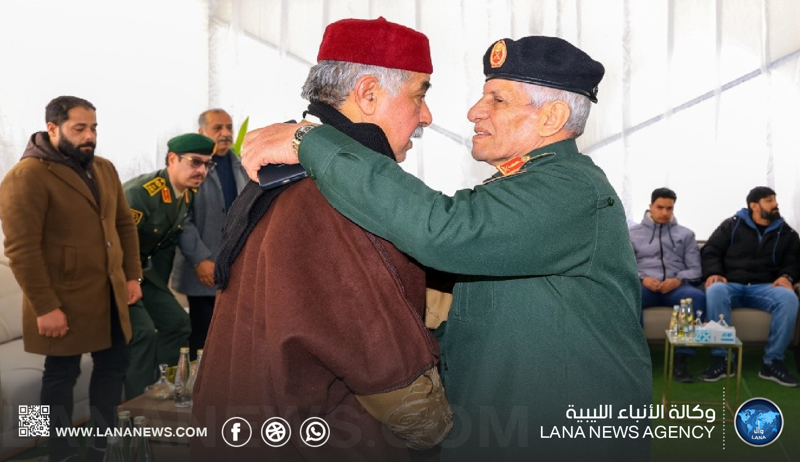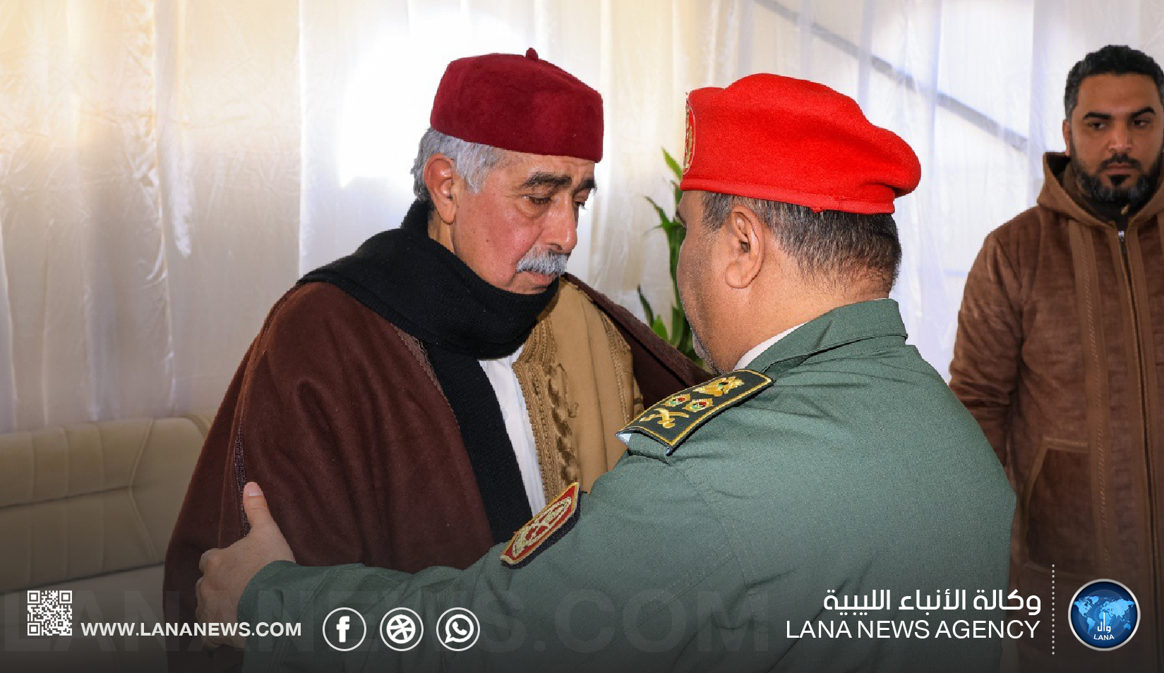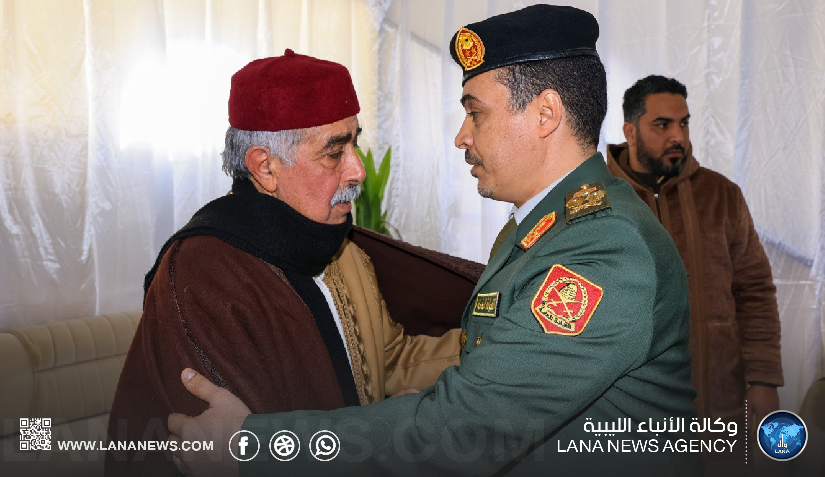 بنغازي 29 مارس 2026 (الأنباء الليبية) – قدم نائب القائد العام للقوات المسلحة الفريق أول ركن صدام حفتر، ورئيس الأركان العامة الفريق أول ركن خالد حفتر، ومدير مكتب القائد العام الفريق أول أيوب بوسيف، رفقة وفد رفيع من القيادة العامة، واجب العزاء لمستشار الأمن القومي السيد عبدالرازق الناظوري في وفاة والدته.